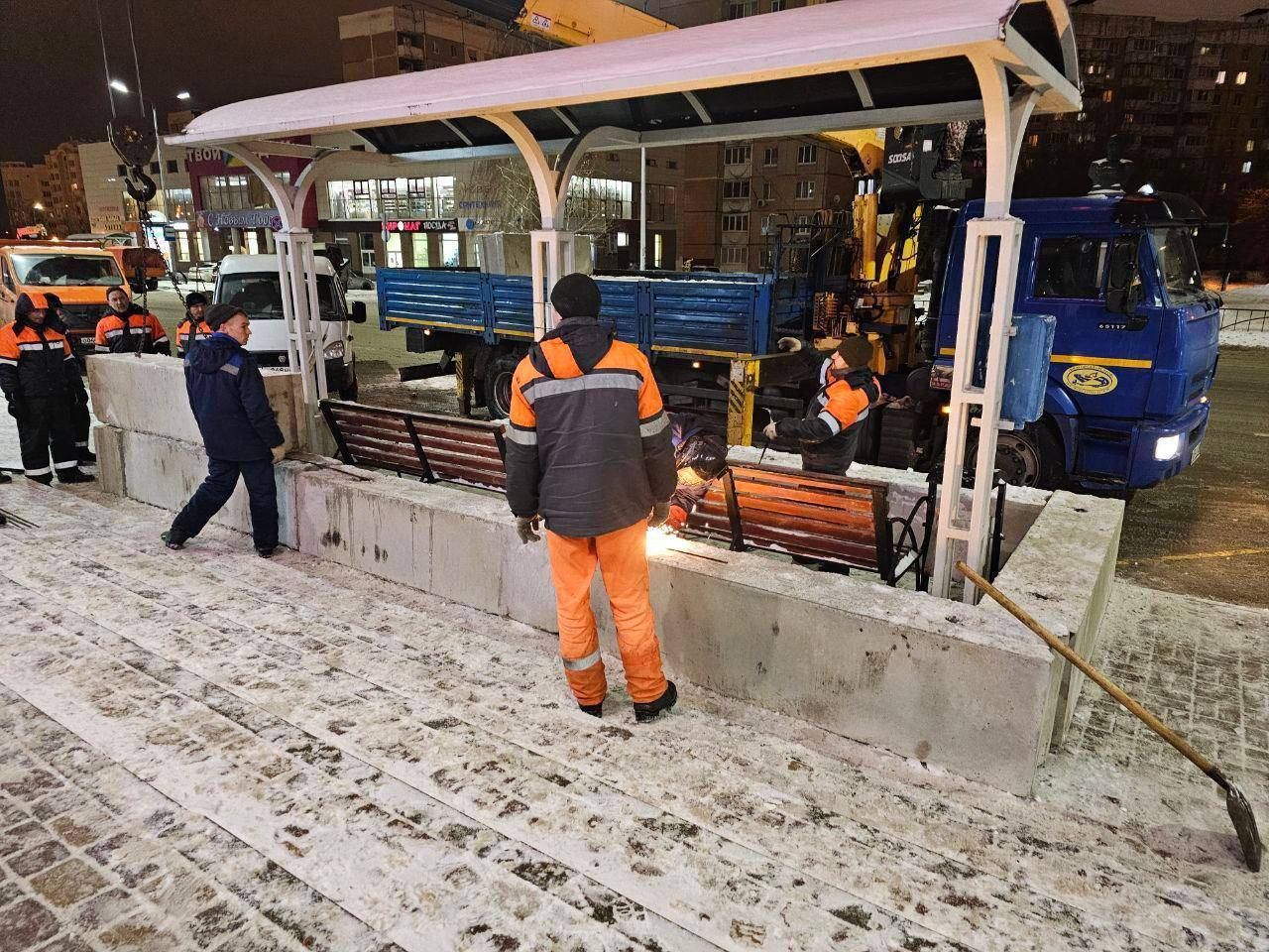 Зупинки укріплюють мішками з піском і бетонними блоками / Фото з пабліків
