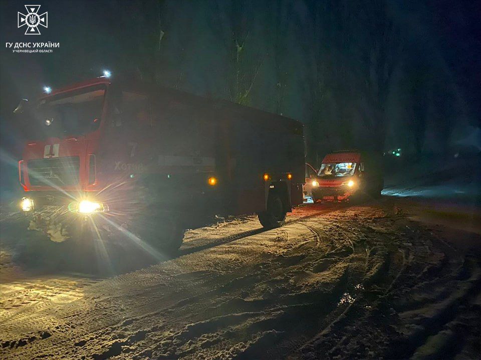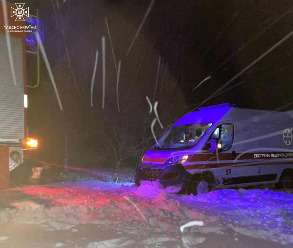 У селі Хряцька Чернівецького району внаслідок погіршення погодних умов автомобіль швидкої, поспішаючи на виклик, не зміг проїхати на засніженій ділянці дороги. На допомогу медикам прибули рятувальники.