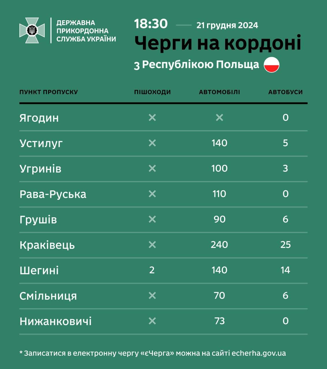 За даними Держприкордонслужби, станом на вечір на кордоні з Україною до Польщі така ситуація: