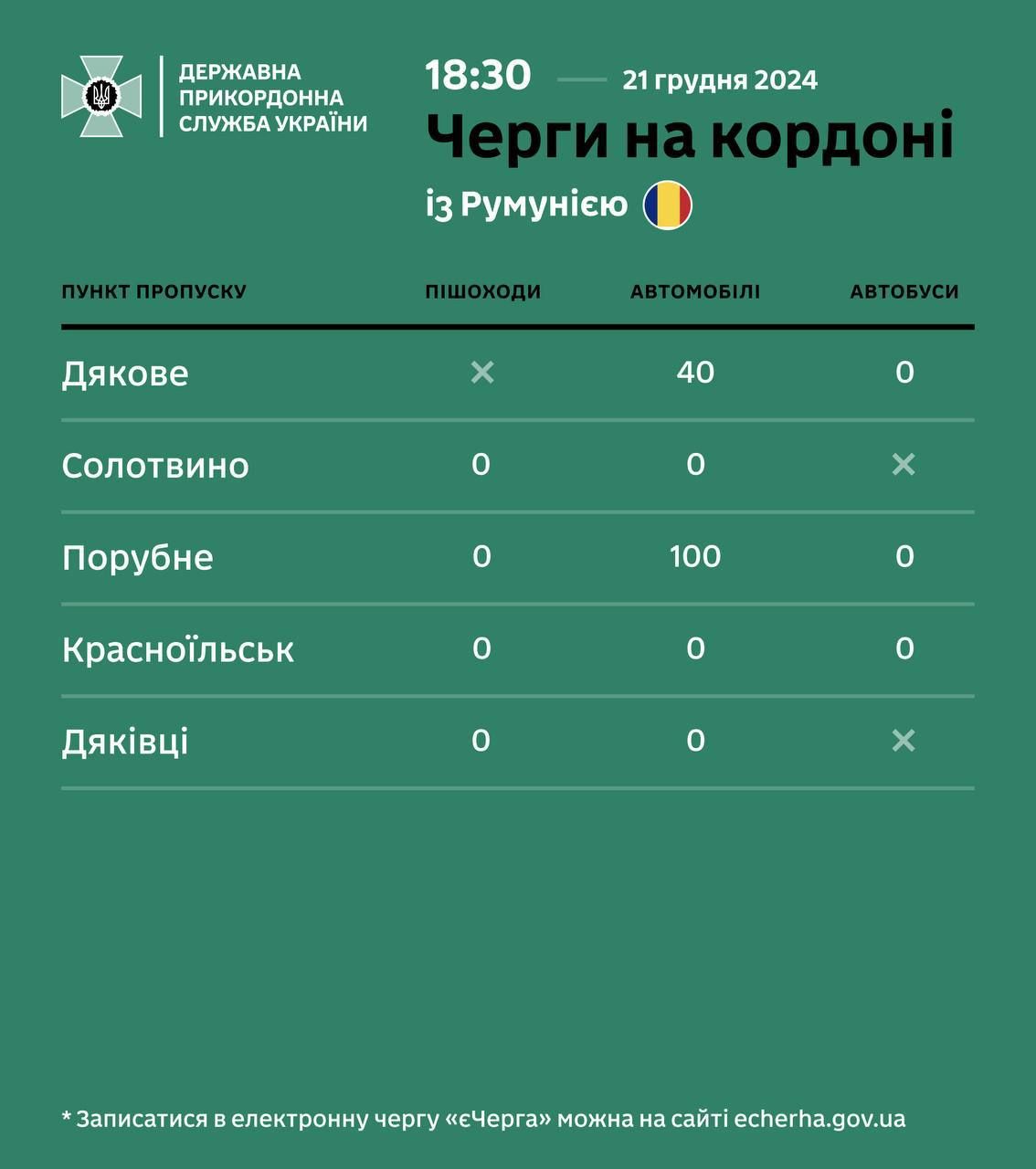 - ПП "Краковець – Корчева" – 240 автомобілів, 25 автобусів,