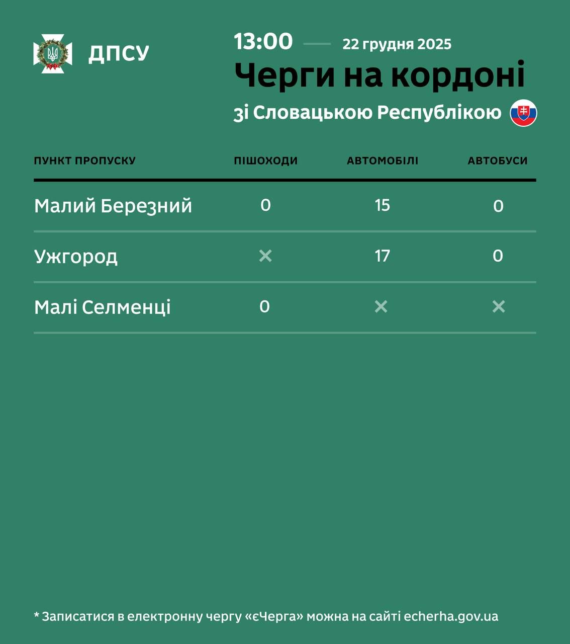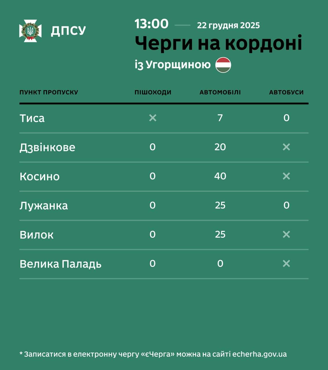 Станом на 13:00 22 грудня найбільш завантаженим напрямком залишається кордон з Польщею, де спостерігаються значні скупчення як легкових автомобілів, так і автобусів. На кордонах з іншими країнами ситуація значно спокійніша.