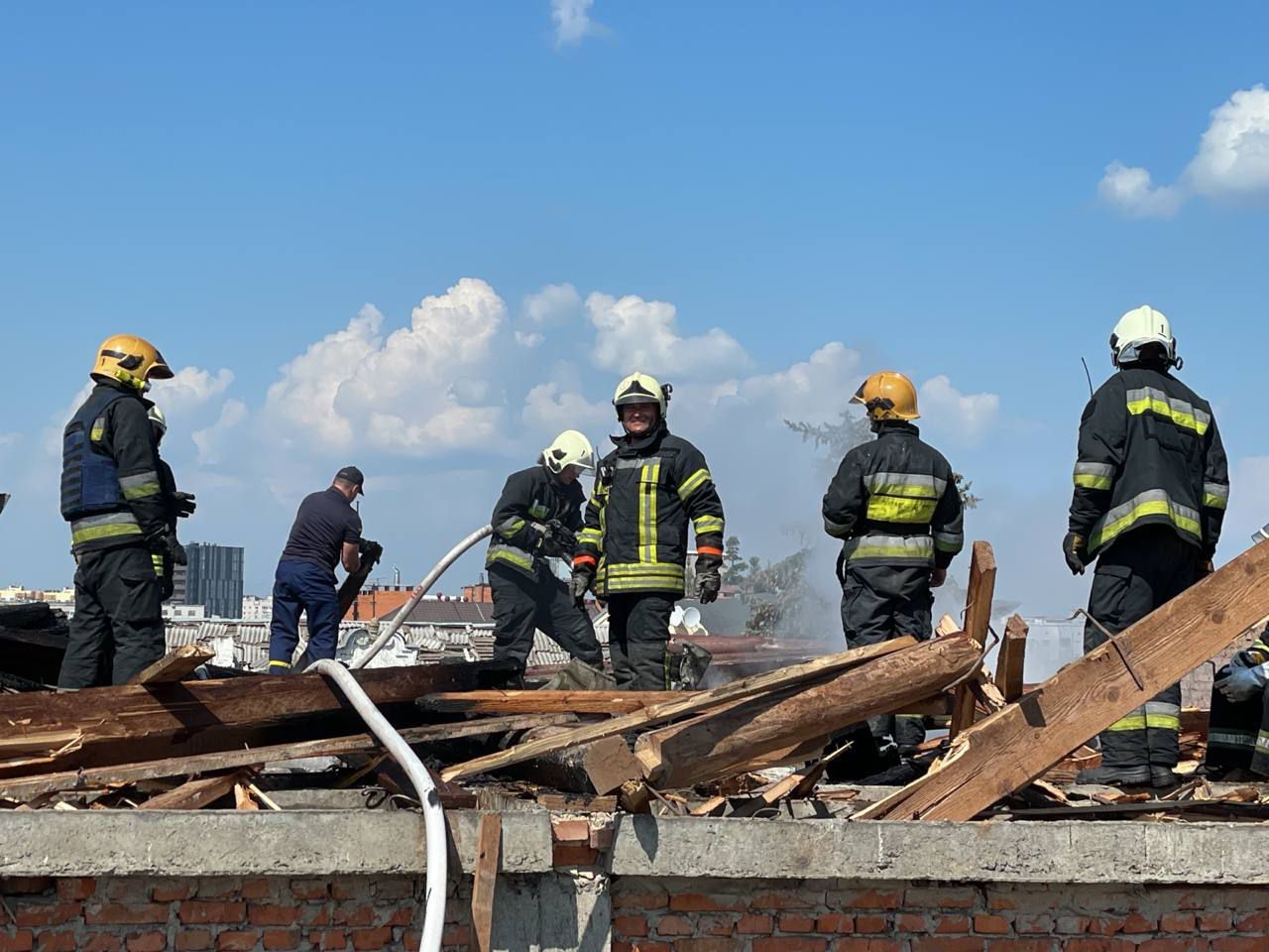 На місці терористичної атаки росіян працюють рятувальники. Вони ліквідовують наслідки ракетного удару.