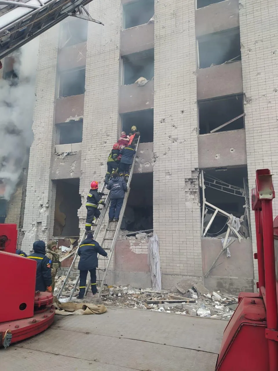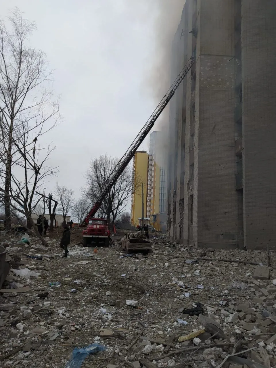 Внаслідок авіаудару сталося руйнування з 2 по 9 поверх, далі – займання 9-поверхового гуртожитку,