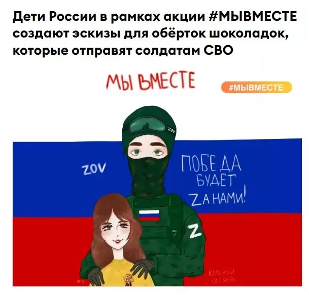 Особливої уваги заслуговує акція MyVmeste або російською МыВместе. От у її рамках допомагають уже безпосередньо російським солдатам. Організація сприяє доставці їм їжі, спорядження. І все це, ясна річ, супроводжується милими дитячими листами, окопними свічками. Турбуються, так би мовити, про тепло та затишок убивць на фронті.