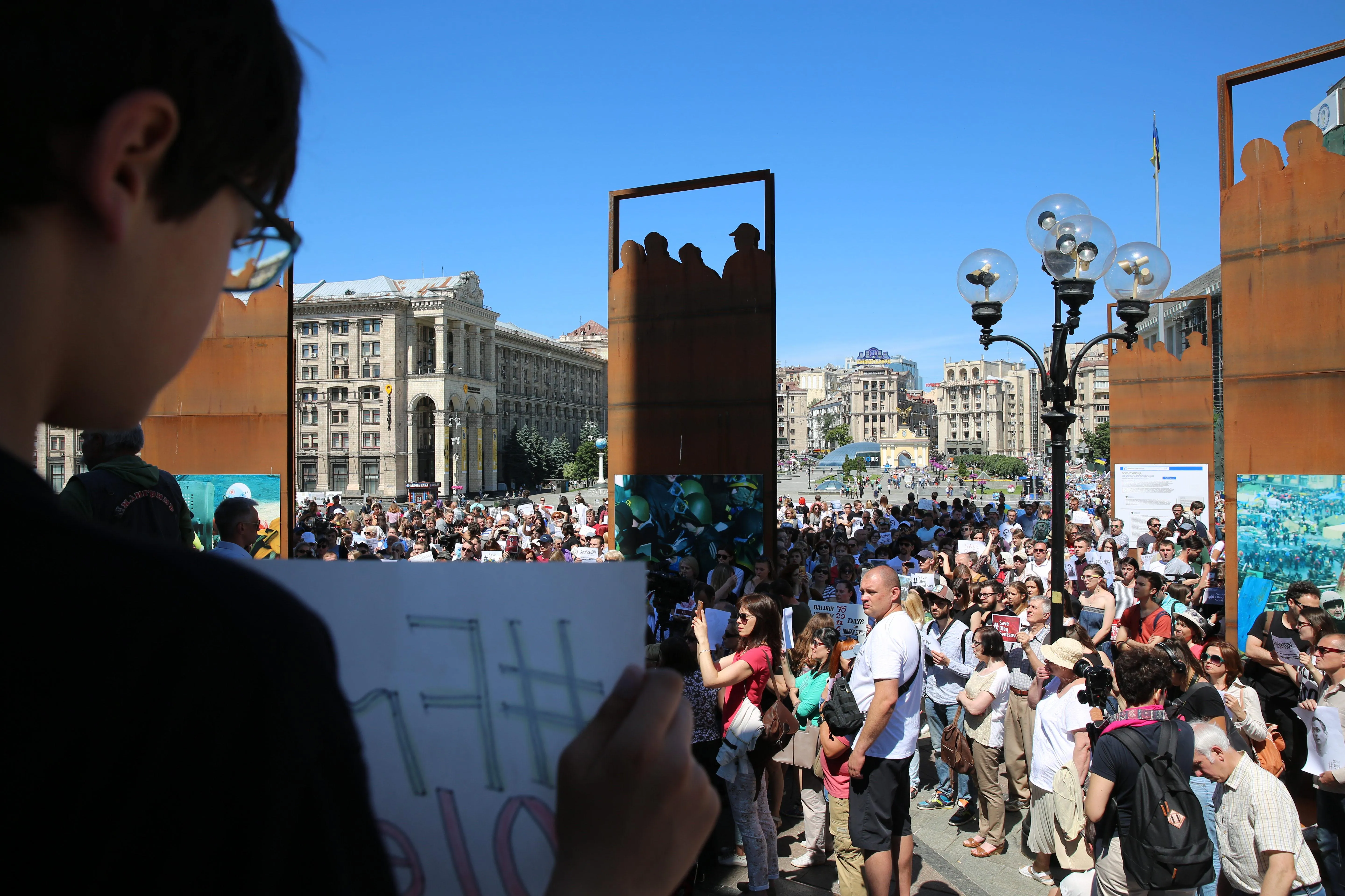 Учасники акції скандували гасла "Free Sentsov", "Свободу політв'язням" та співали гімн України. Коли виступи закінчились, ще довго ніхто не розходився.