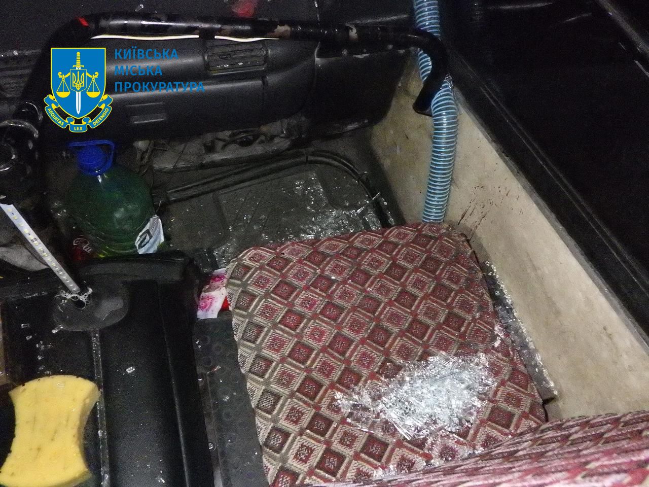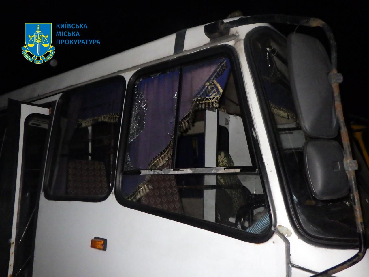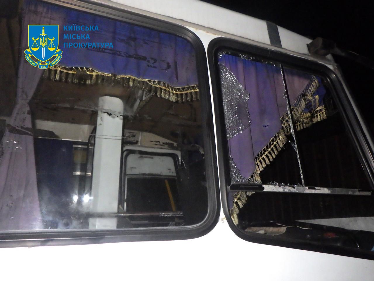 Невідомий у столиці розбив вікно маршрутки пляшкою / Світлини Київської міської прокуратури