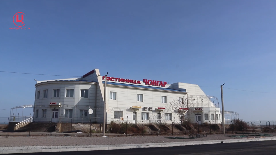 На відео показано будівлю "Гостинница Чонгар", яка розташована біля контрольного пункту в'їзду-виїзду "Чонгар" на адмінкордоні з окупованим Кримом. З невідомих причин на будівлі зникла назва.