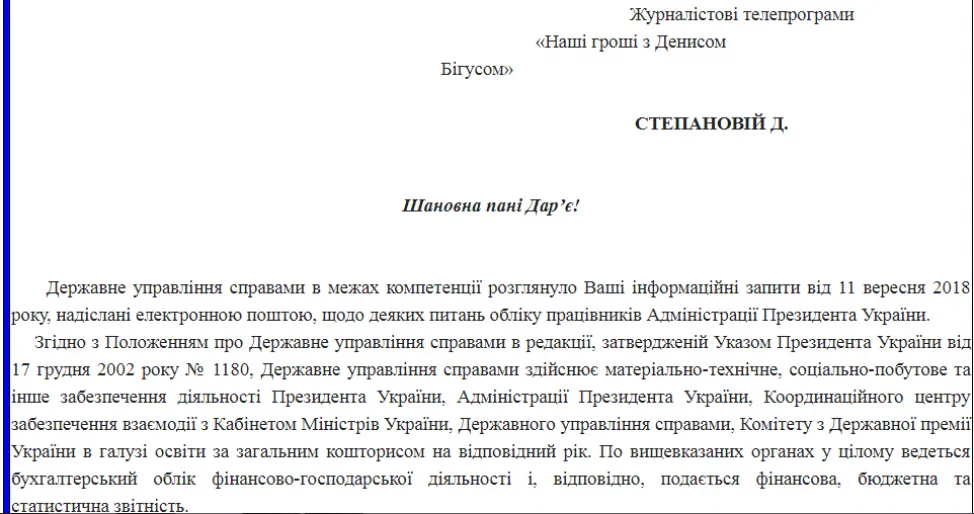 Сьогодні штат офісу президента – 428 працівників. Лише на зарплати Адміністрації у цьому році виділили близько 300 мільйонів гривень з коштів платників податків. Оскільки юридичної особи АП досі не має, її співробітники оформлені в іншій структурі – Державному управлінні справами (ДУС).