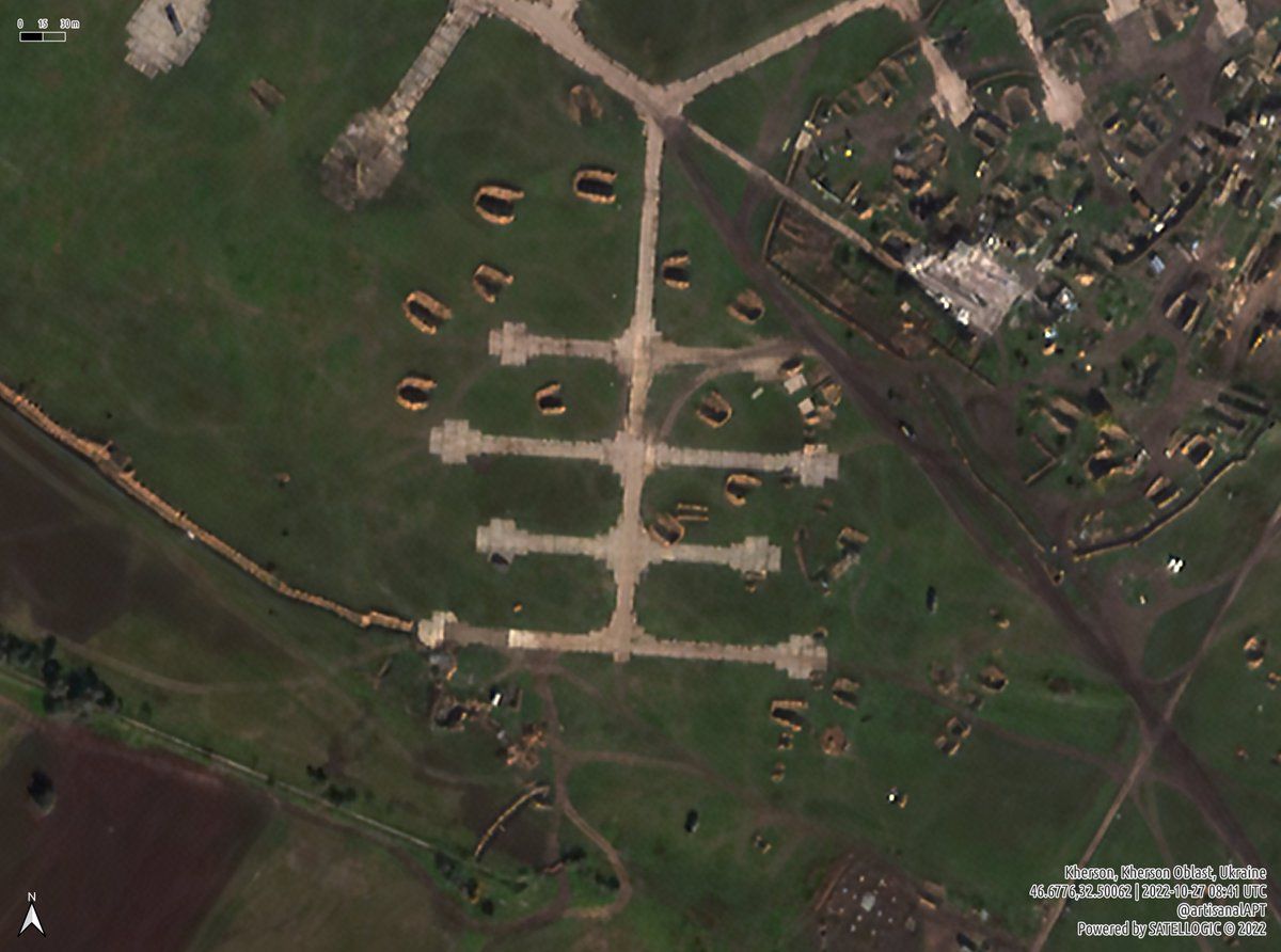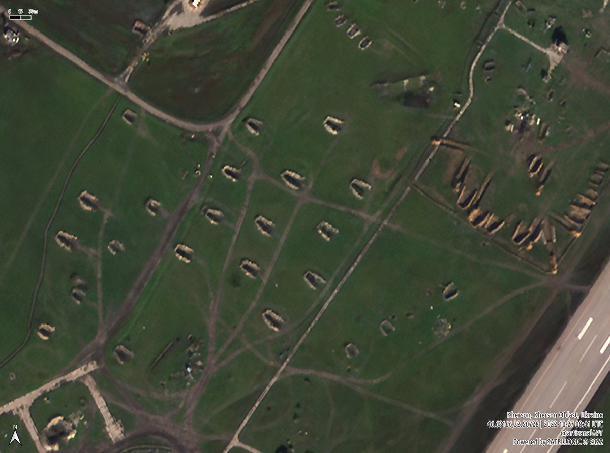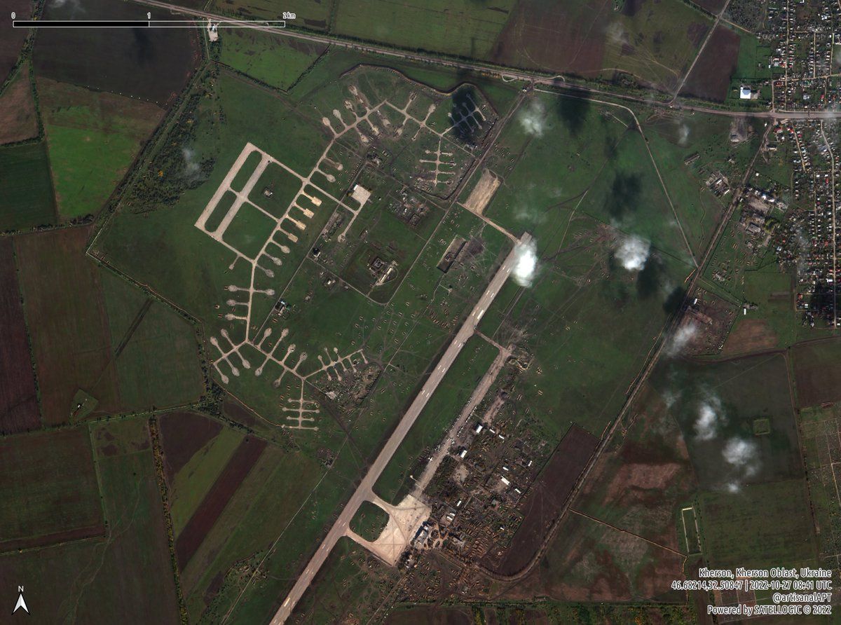Супутникові знімки за 27 жовтня показують, що російські загарбники вивели майже всю техніку з аеродрому біля Чорнобаївки.