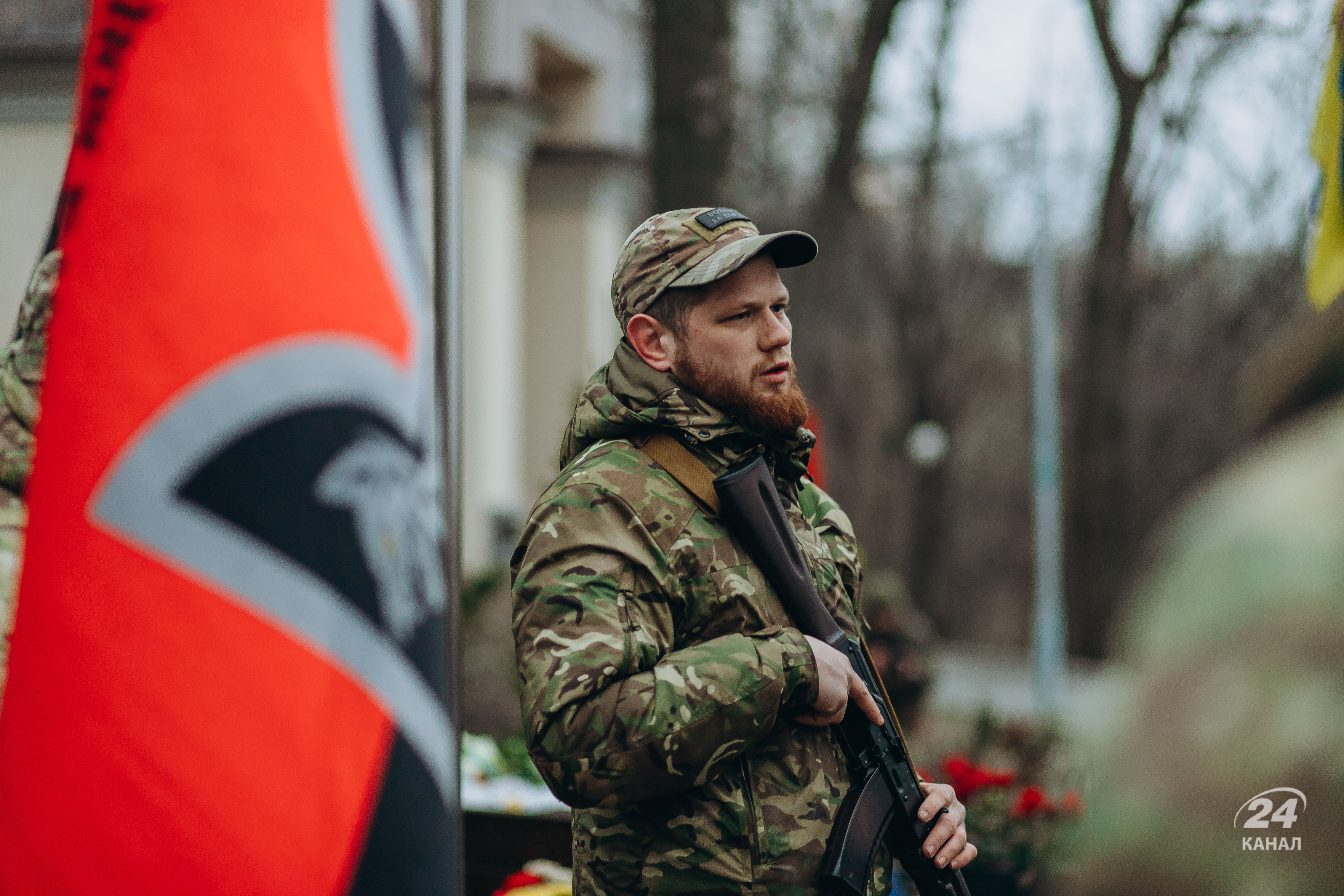 - Під час прощання з Героєм на той час чинний Головнокомандувач ЗСУ Валерій Залужний став навколішки перед матір'ю та коханою "Да Вінчі". Так він висловив найщиріші співчуття.