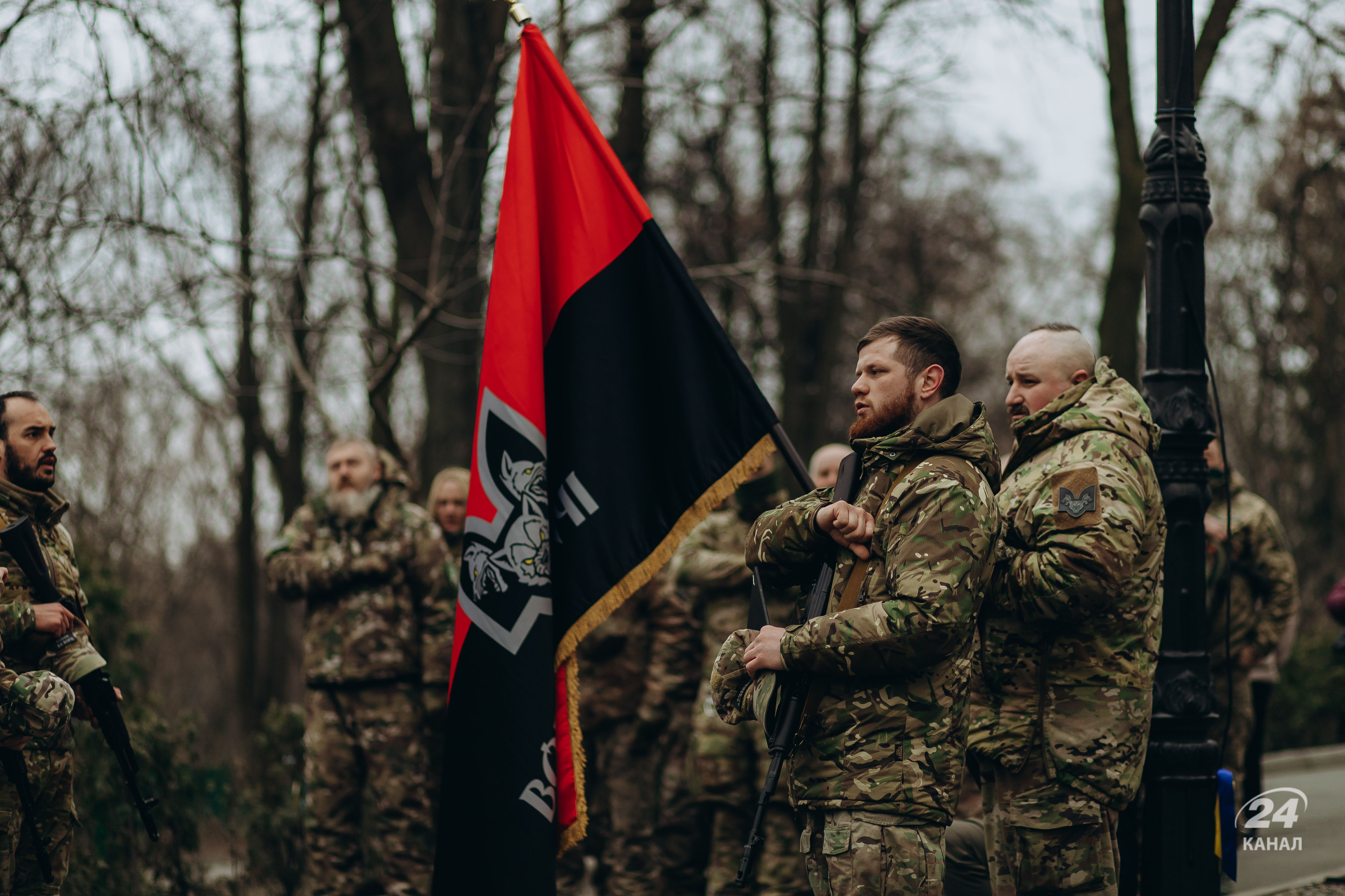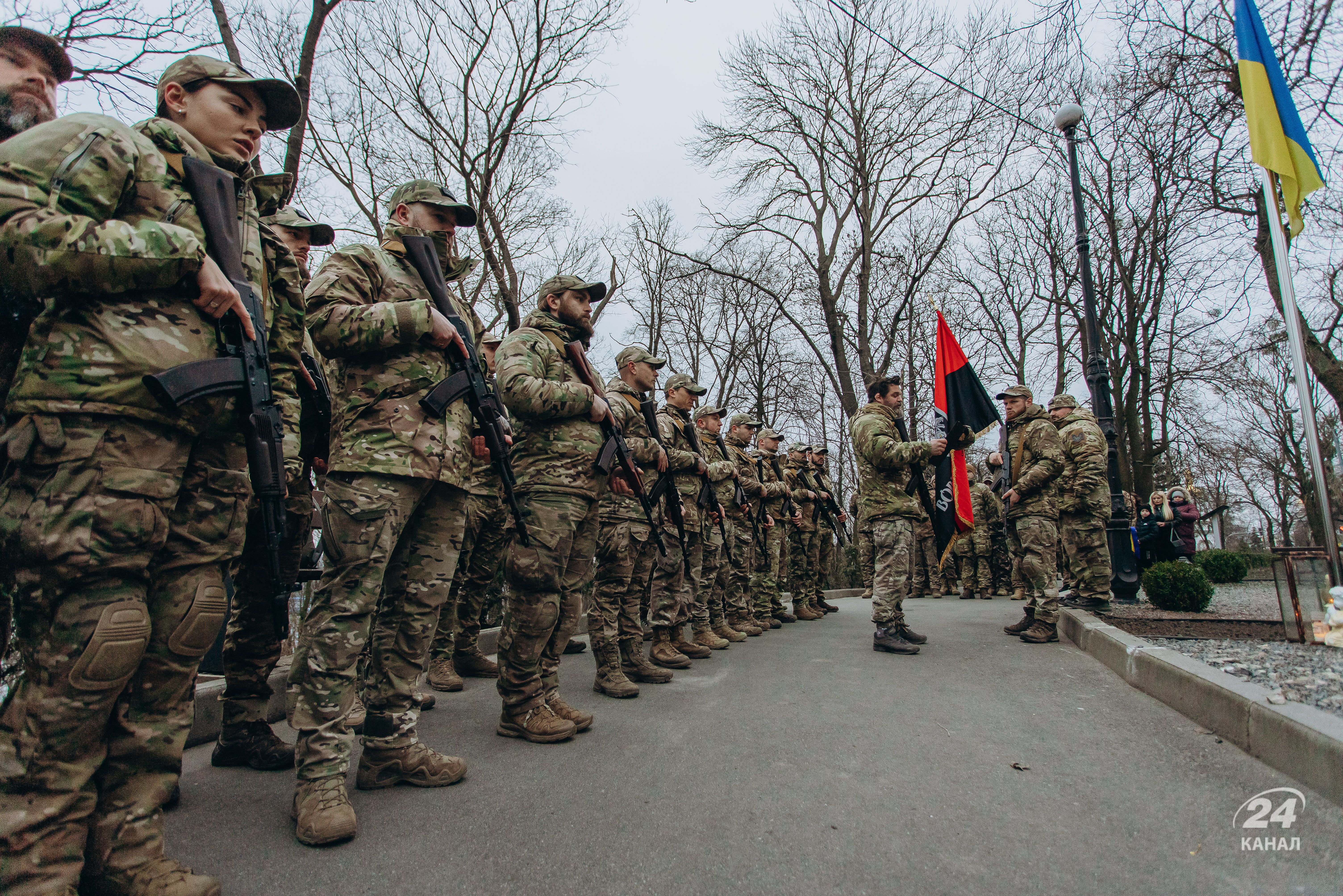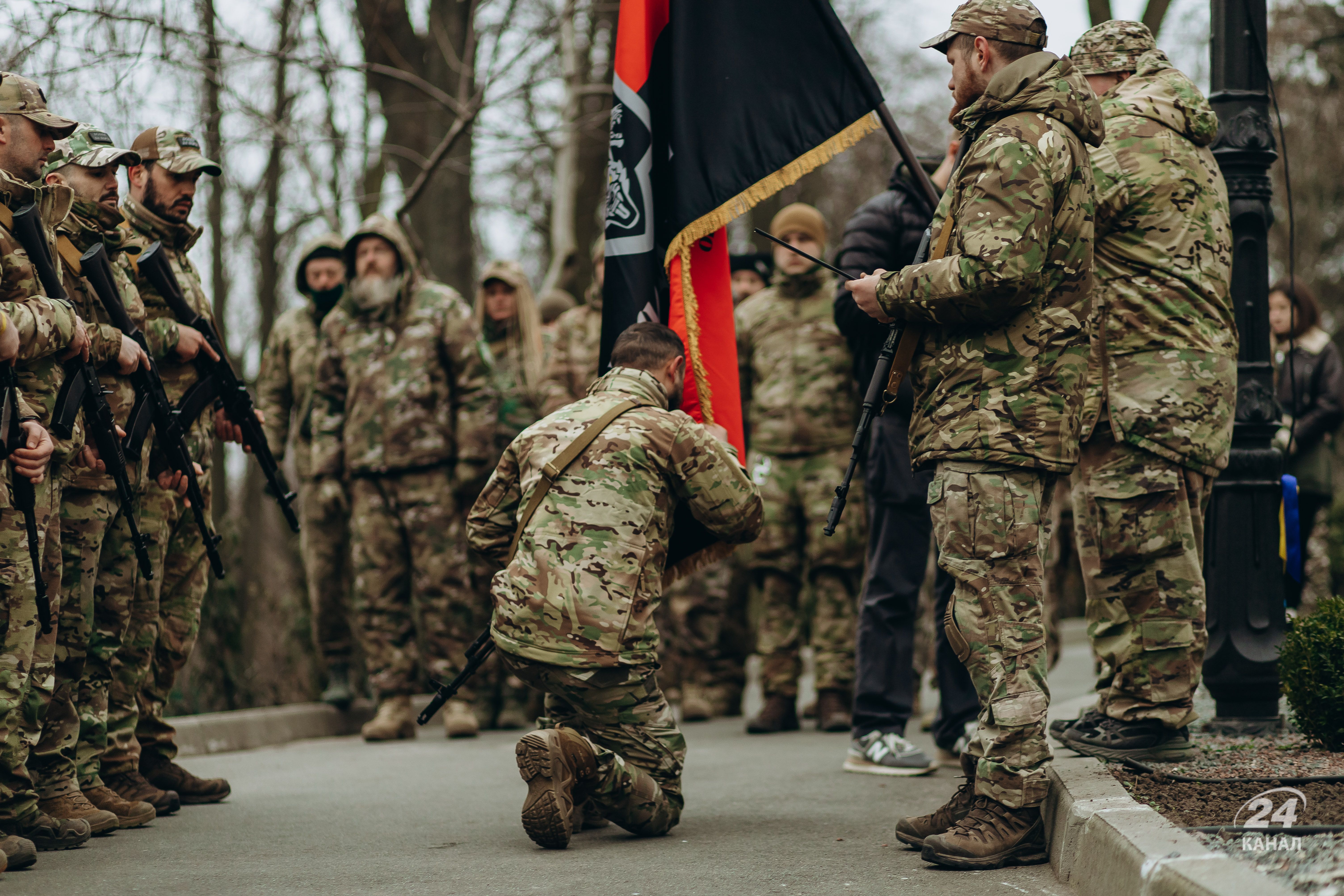 У роковини загибелі Героя бійці батальйону "Вовки Да Вінчі" прийняли присягу добровольця. Як розповіли в коментарі журналістці 24 Каналу в пресслужбі, така традиція існувала за часів, коли підрозділ був добровольчим батальйоном.