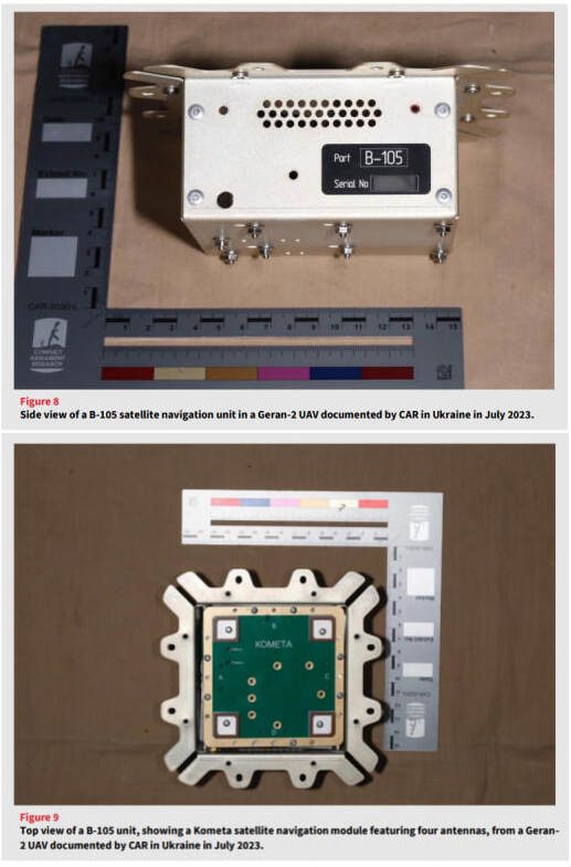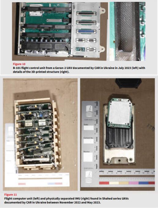 Аналітики CAR додали, що назвати цих постачальників поки що не можуть, тому що ще не завершили усі процедури з відстеження. Проте вони вказують, що орієнтовно третина іноземних компонентів, виявлених у збитих "Герань-2" російського виробництва, були виготовлені в проміжок між 2020 та лютим 2022 року, ще 12 компонентів – уже після лютого 2022 року, а усі три елементи виробництва Росії – уже протягом січня-березня 2023 року.