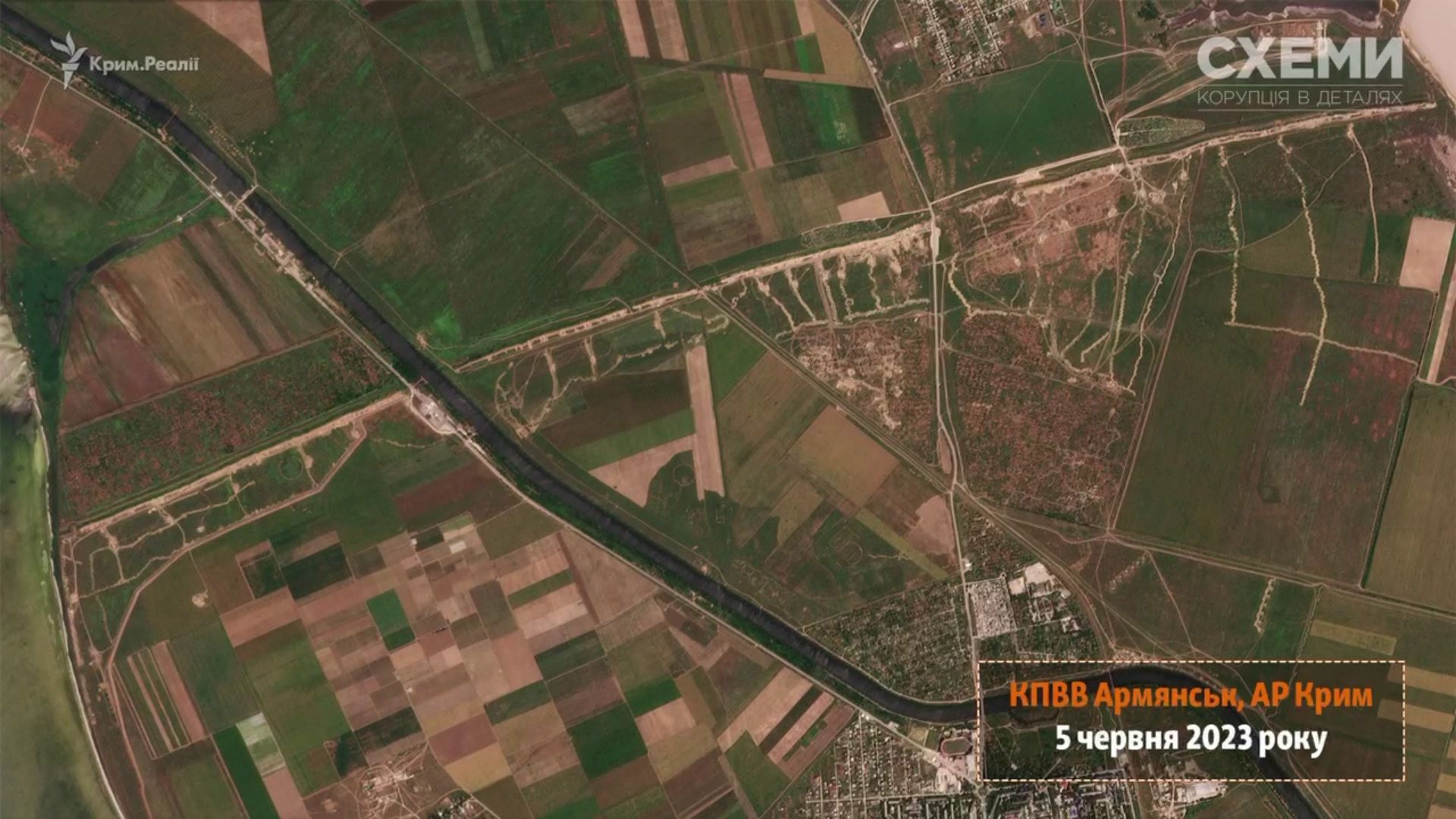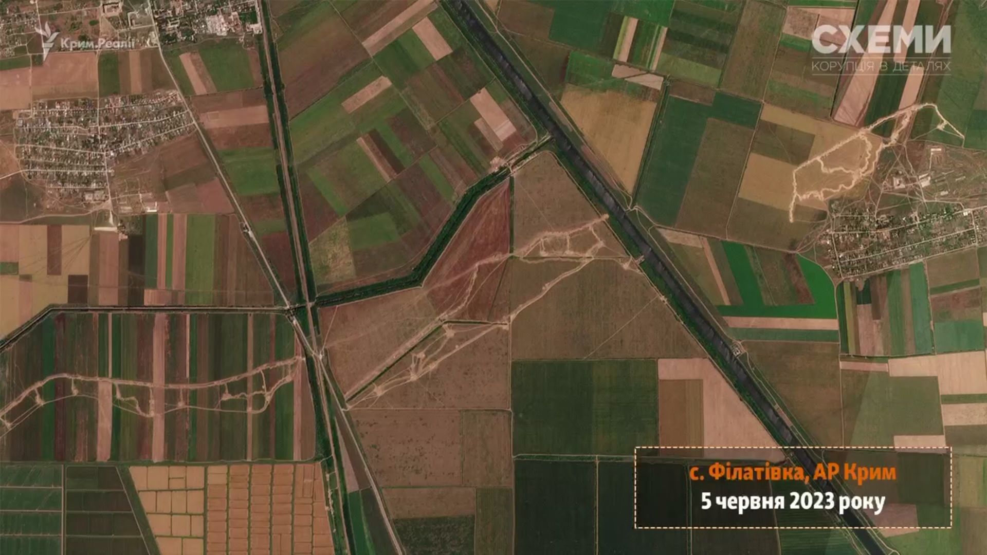 Супутникові знімки зроблені з чотирьох локацій з новими окопами. Ці споруди – біля села Філатівка, КПВВ Армянськ, міста Красноперекопськ та у Джанкойському районі.