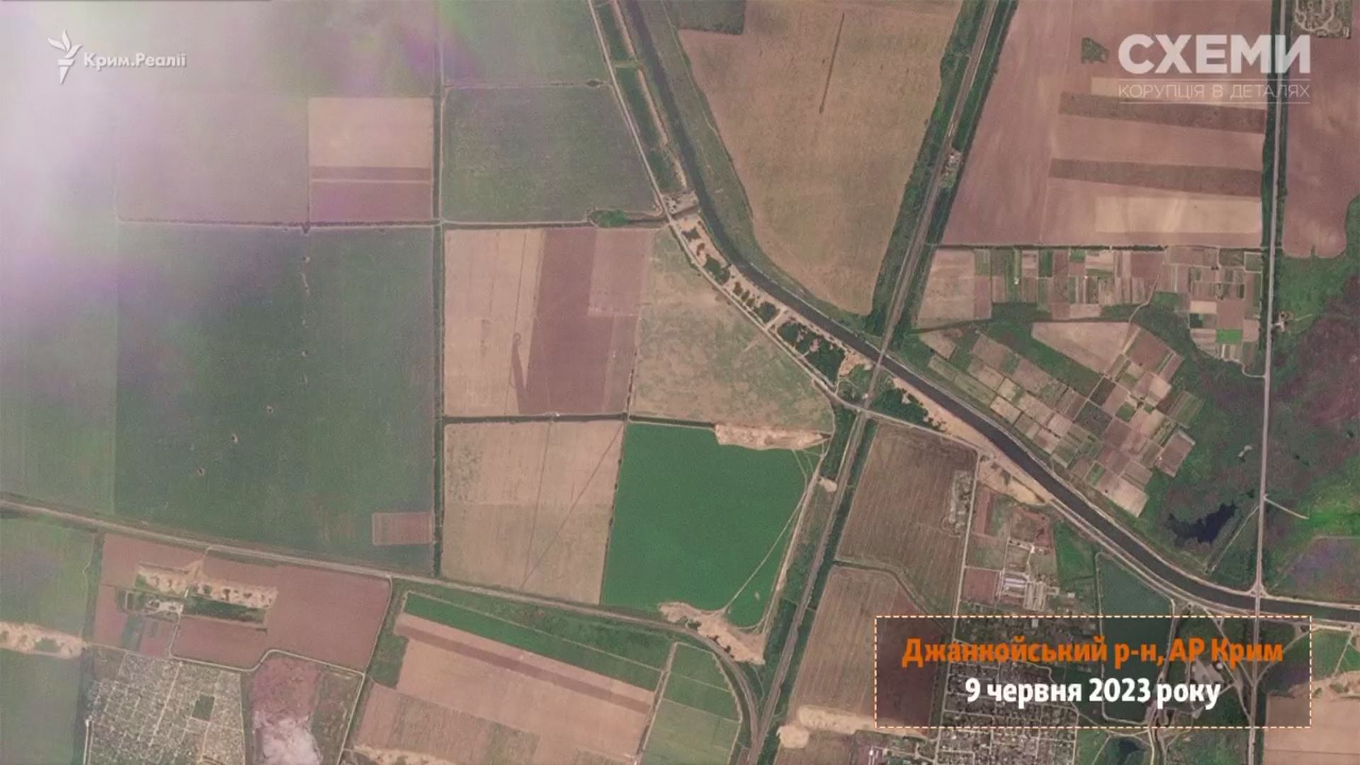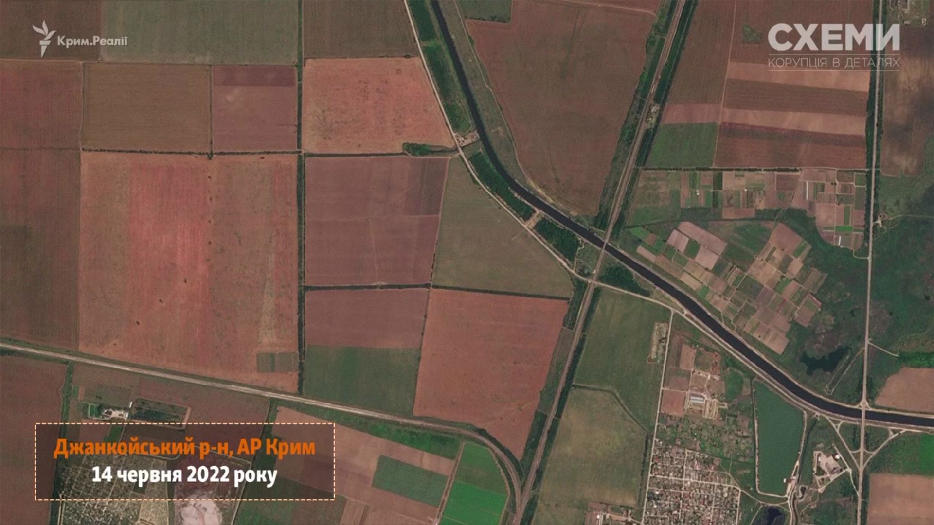 Порівняння супутникових знімків Джанкойського району 14 червня 2022 року та 9 червня 2023 року / Фото "Схеми"
