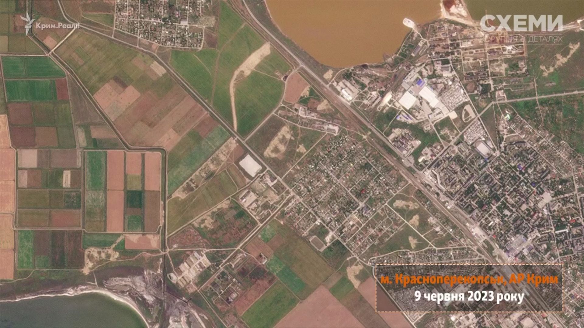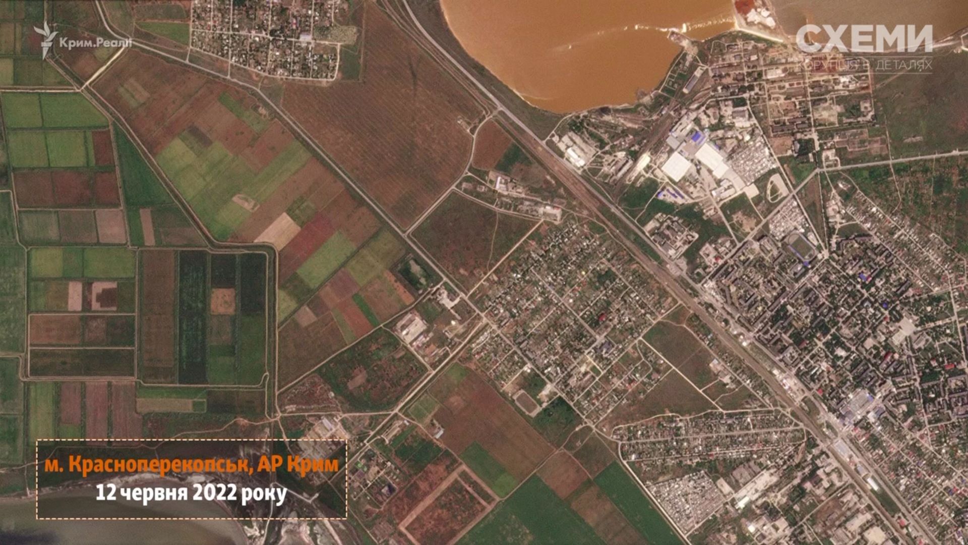 Порівняння супутникових знімків Красноперекопська 12 червня 2022 року та 9 червня 2023 року / Фото "Схеми"