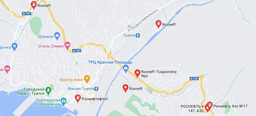 Навіть на гугл-карті добре видно, що це ціла мережа: нафтооб'єктів у Туапсе багато, поруч із ними розташовані автозаправні станції.
