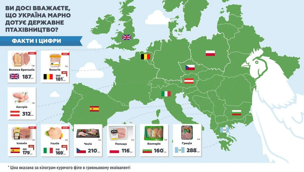 Скільки коштує м'ясо курки у різних країнах ЄС: інфографіка