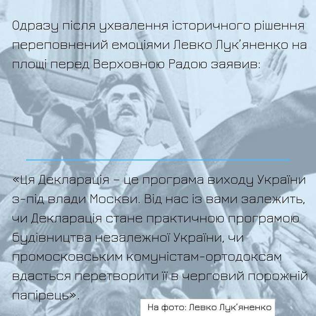 "Нас чекає велика і важка боротьба!" – ці слова В'ячеслава Чорновола, ініціатора ухвалення Декларації про державний суверенітет України, на жаль, стали пророцькими для нашої держави,