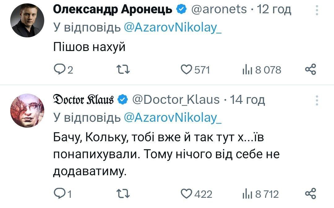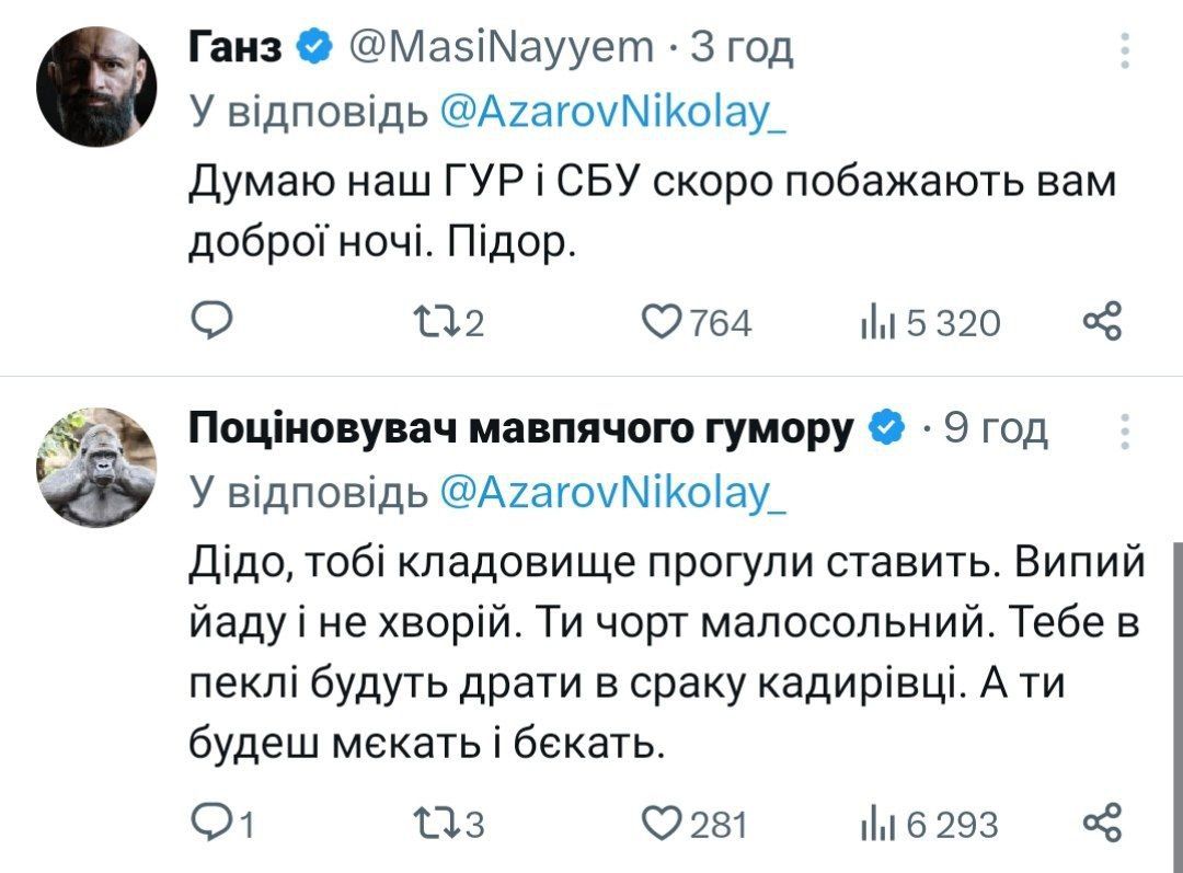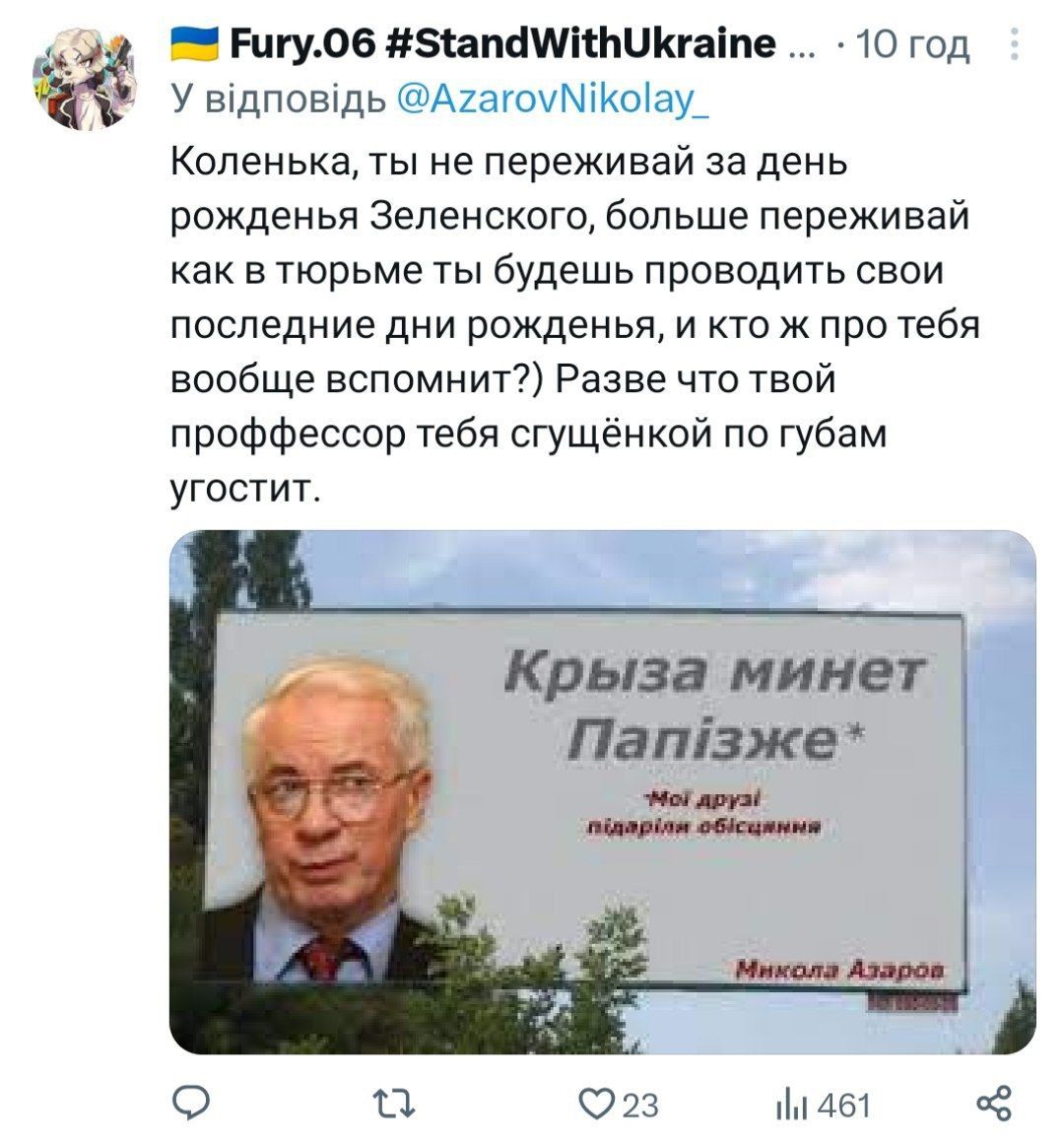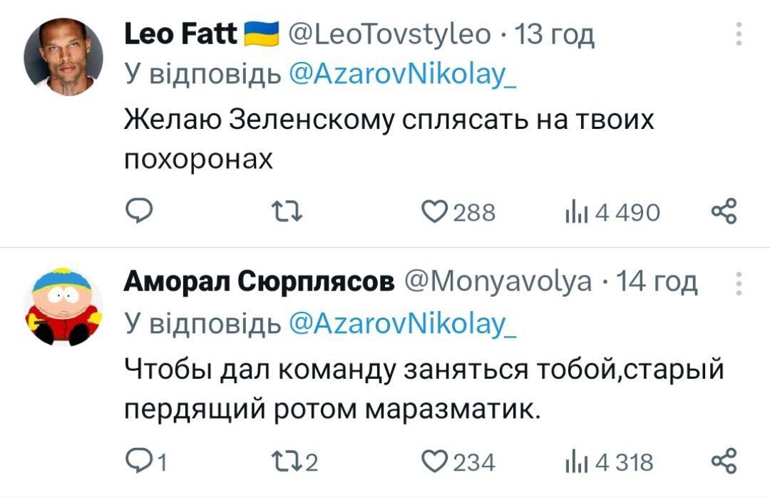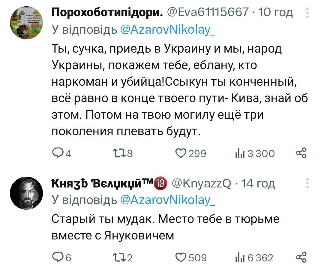Азаров "привітав" Зеленського/ Скриншот з мережі Х