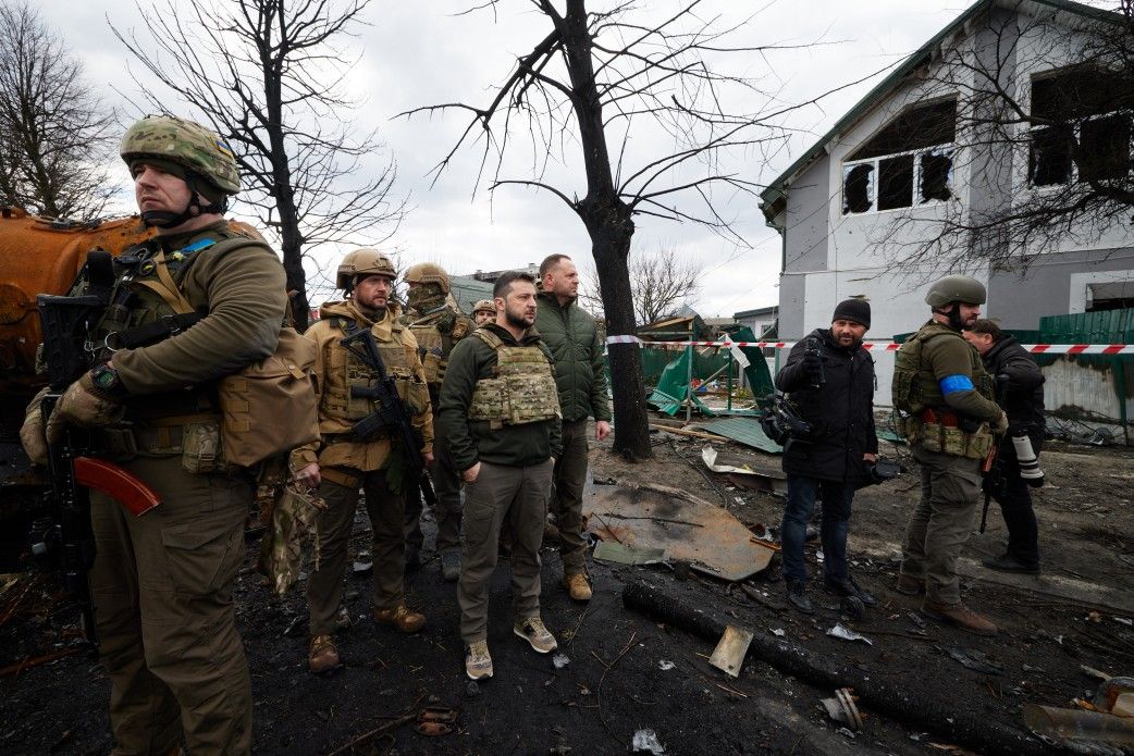 Навесні західніше Києва точилися запеклі бої між українськими воїнами та окупантами. У цей час Зеленський залишався в столиці, звідки й керував військом та державою. На початку квітня Сили оборони остаточно вибили росіян з Півночі, а Зеленський відвідав Київську область, зокрема й Бучу – місце страшних звірств росіян.