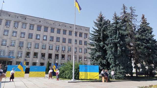 Український прапор розгорнули навіть на тимчасово окупованих територіях. Так, у День Незалежності він замайорів неподалік Маруіполя .