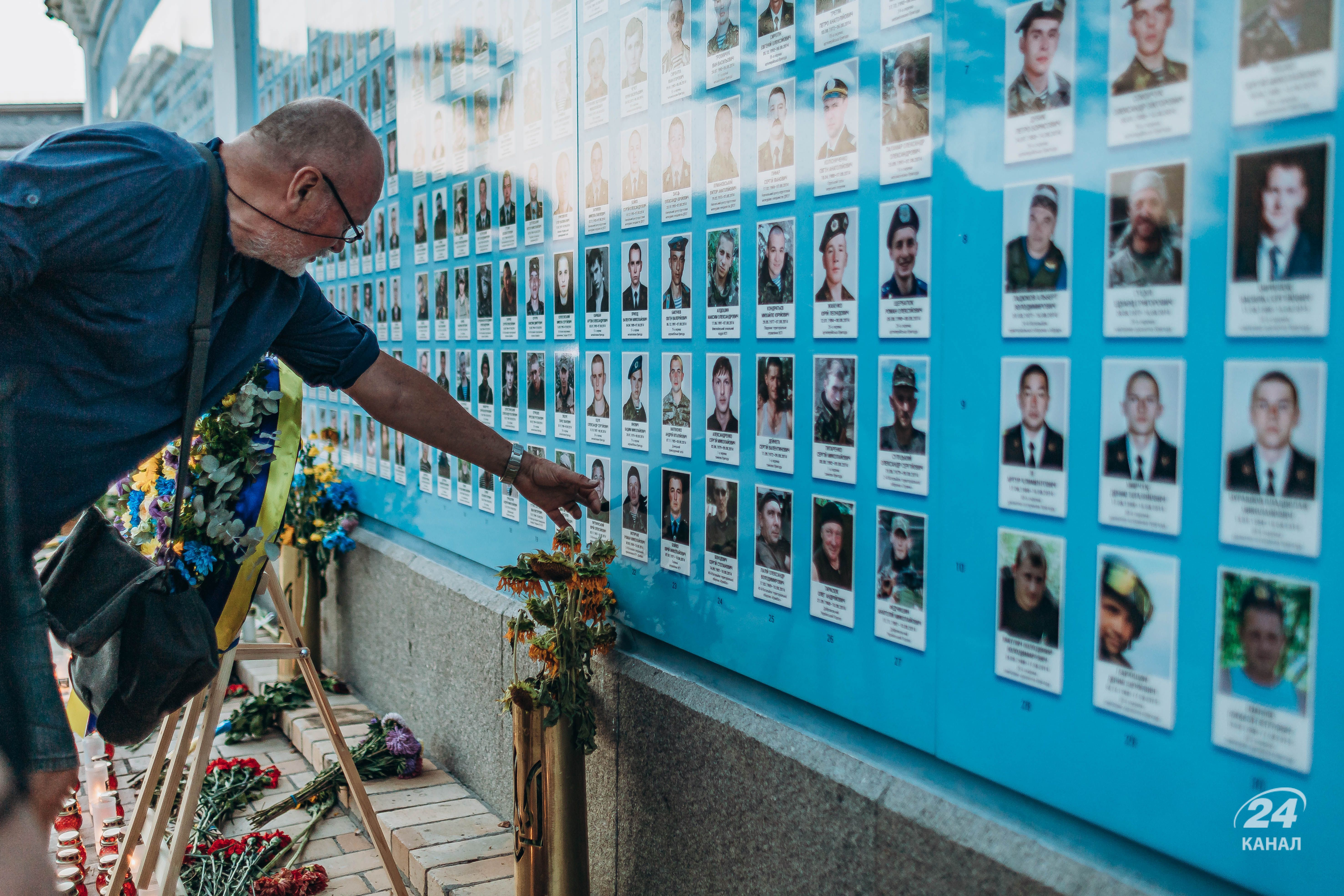 Зокрема, жителі столиці та гості міста прийшли до центру Києва, аби виявити свою шану полеглим воїнам. У цьому матеріалі 24 Каналу дивіться фоторепортаж з місця події.