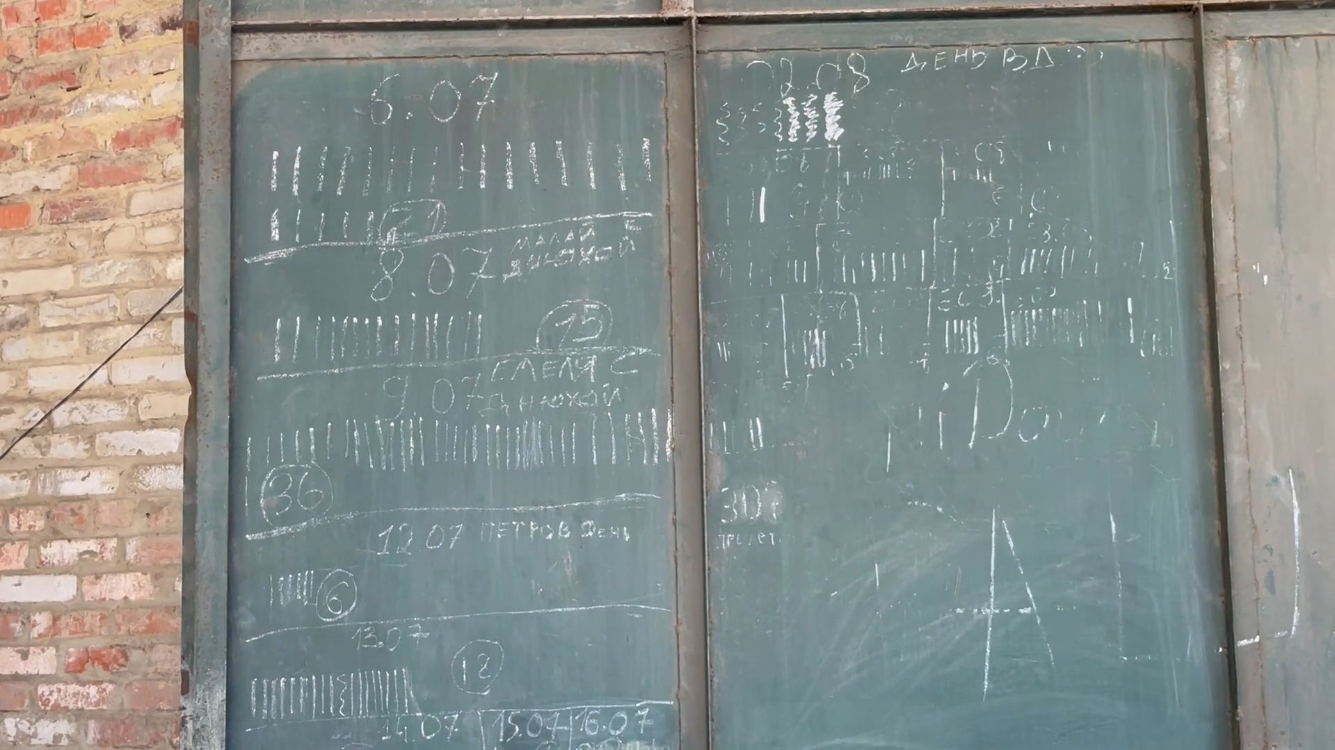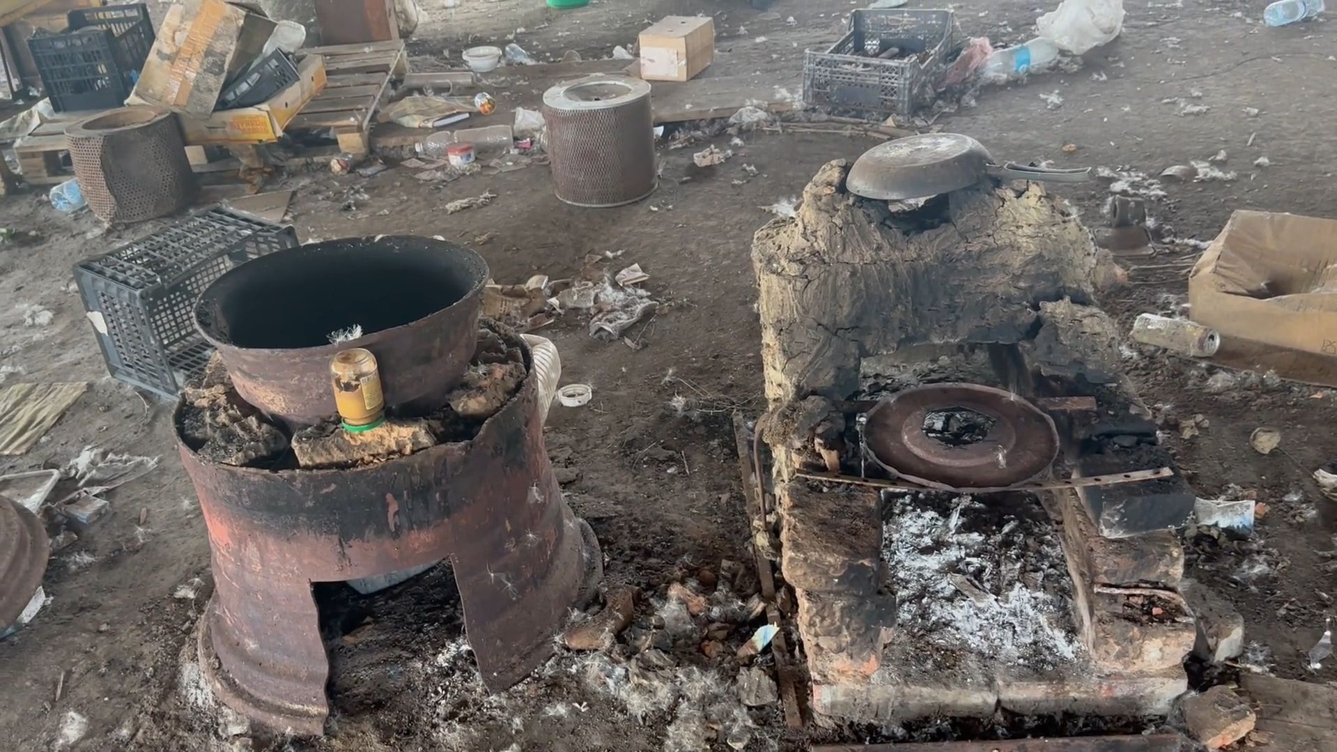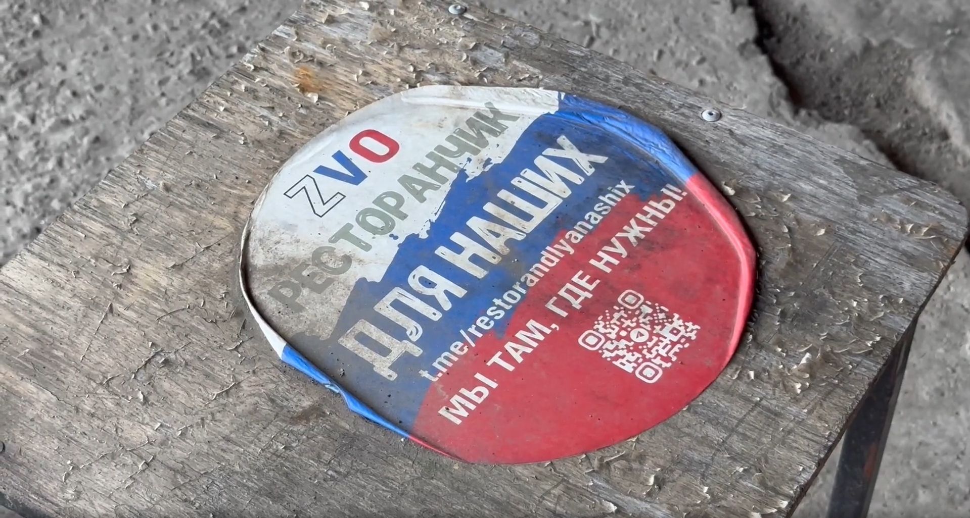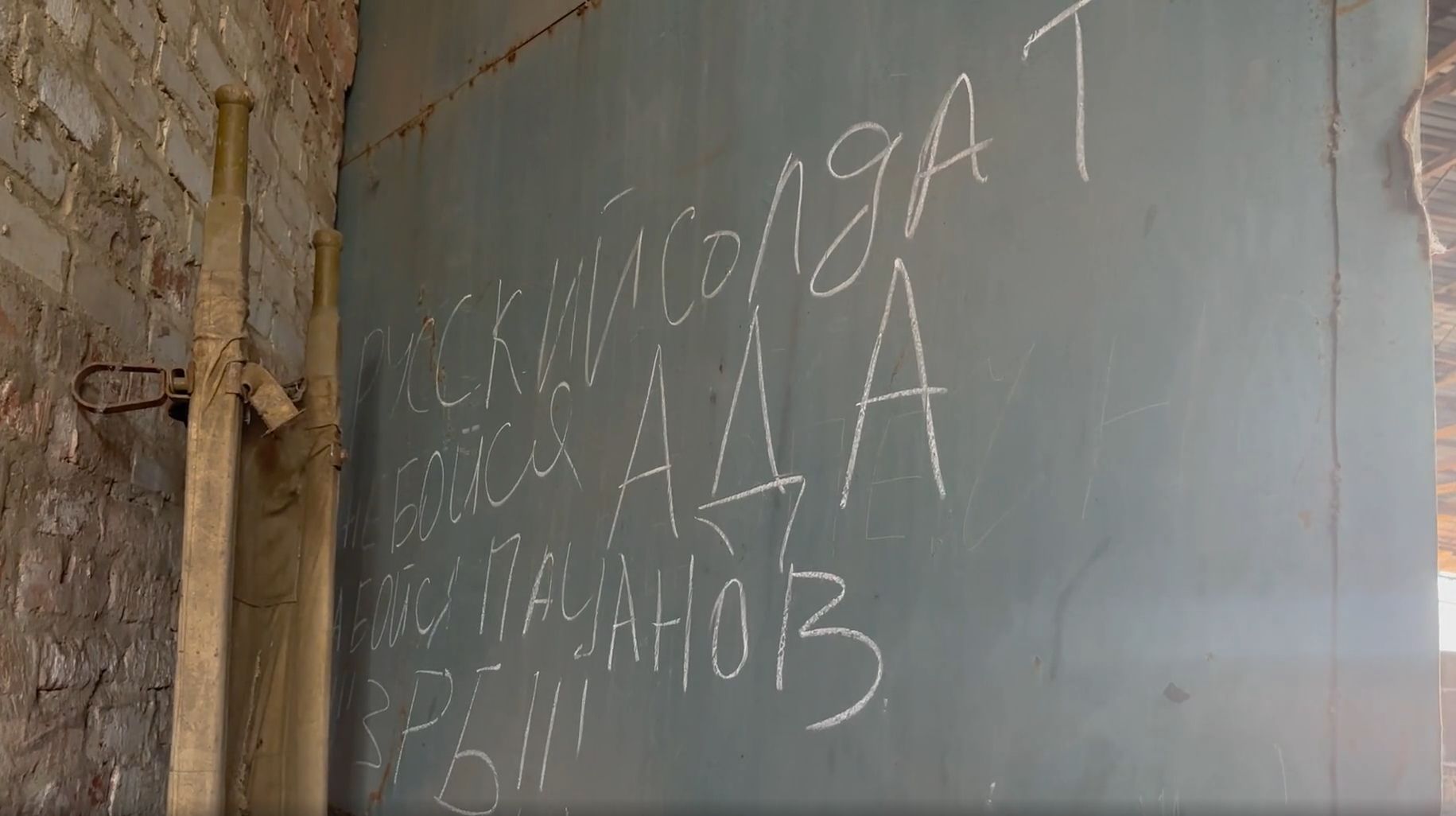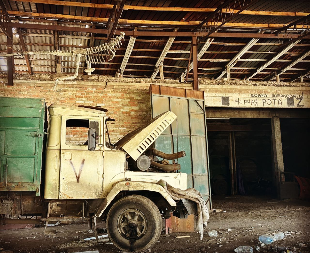 В ангарі фермера жила рота окупантів, як видно з написів – "Чорна рота Z". За словами місцевих, там оселилися осетини. Вони залишили після себе купу нагадувань про "русскій мір" – від бляшанок з-під консерви до викрадених зі школи експонатів.