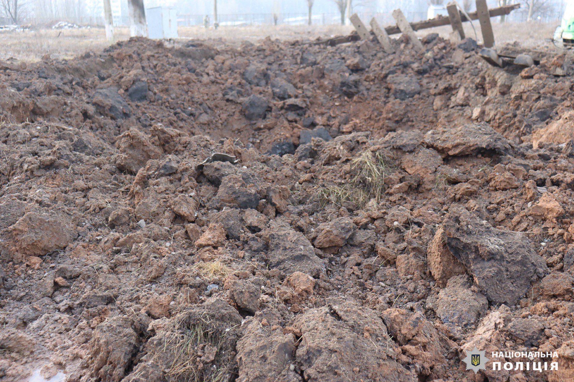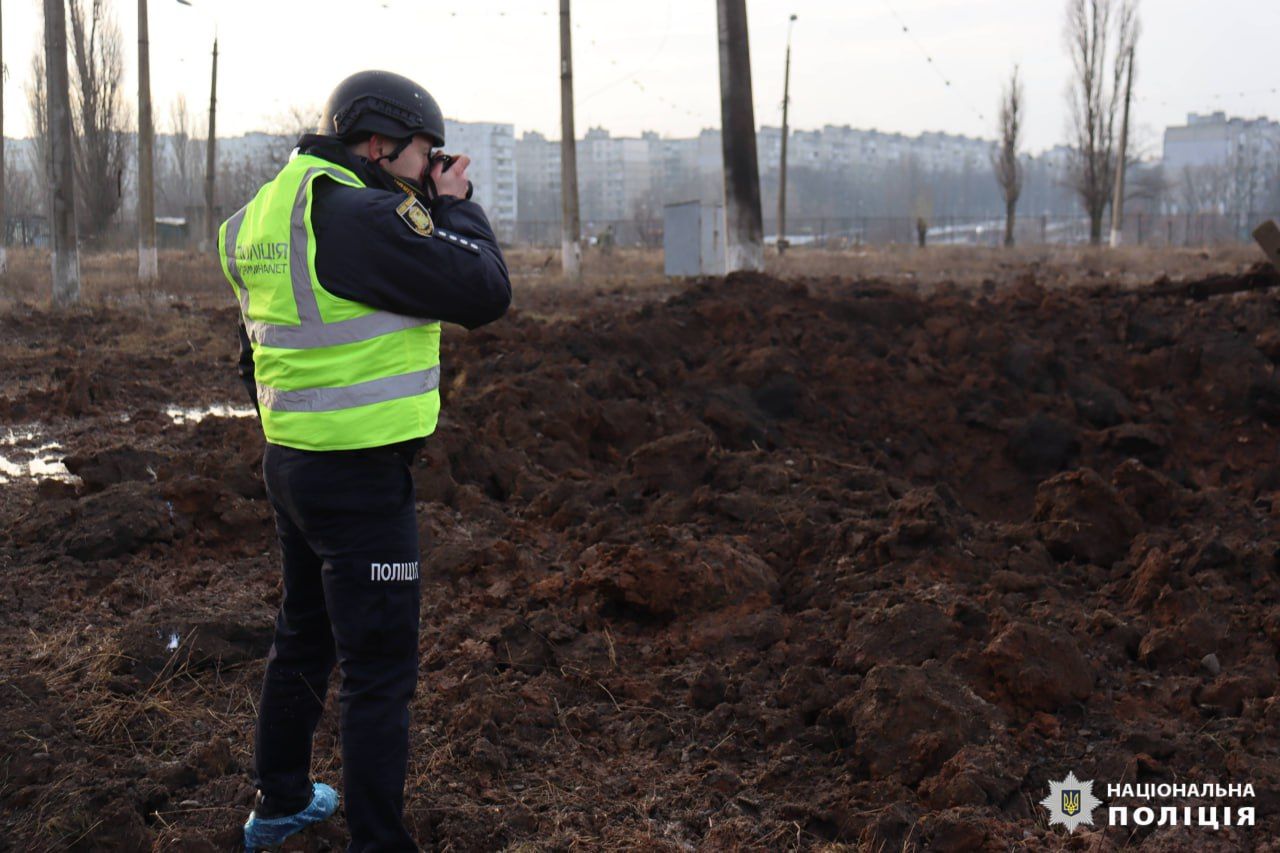 На фото, оприлюднених Національною поліцією, видно величезні вирви. На місці знайшли уламки С-300.