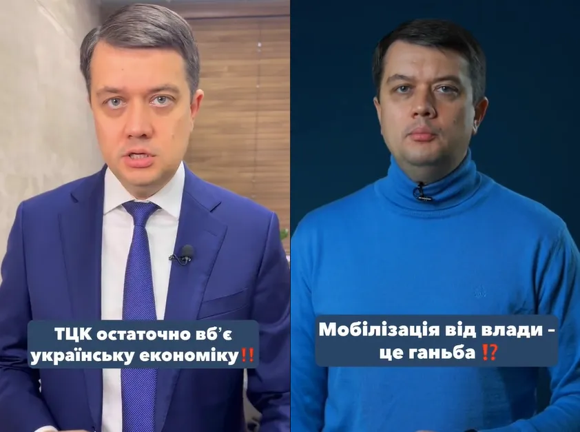 Також депутати обговорюють повноваження Зеленського під час воєнного стану. В одному з відео Разумков стверджує, нібито навесні 2024 року президент втратить легітимність, оскільки термін його каденції закінчиться. Він додав, що далі виконувати обов'язки президента має голова Верховної Ради.