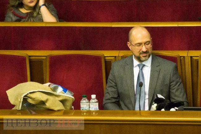 Клименко подарувала Шмигалю кота у мішку / Фото"Цензор.Нет"