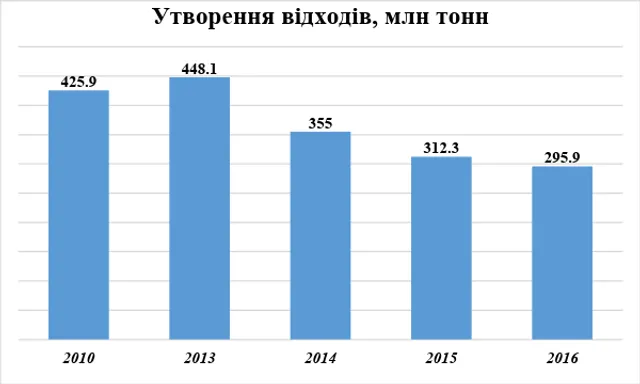 Давайте подивимося на динаміку утворення відходів за роками (дані Держстату).