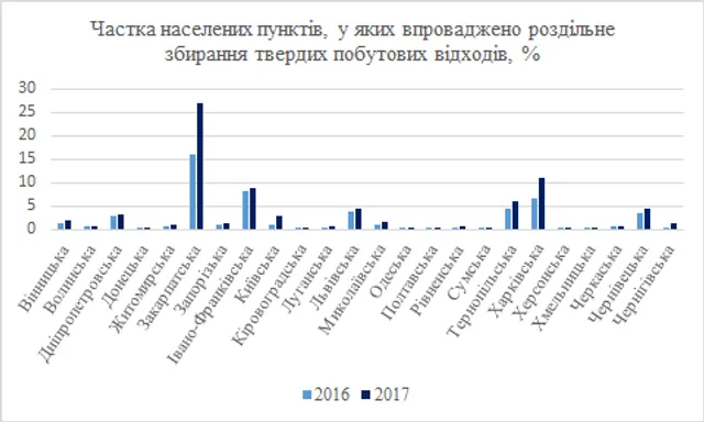 Проте з даних, які наводить Мінрегіон, ми бачимо, що частка населених пунктів, у яких впроваджено роздільний збір сміття, є досить низькою, зважаючи на те, що з 2018 року законом вводиться обов'язкове сортування відходів.