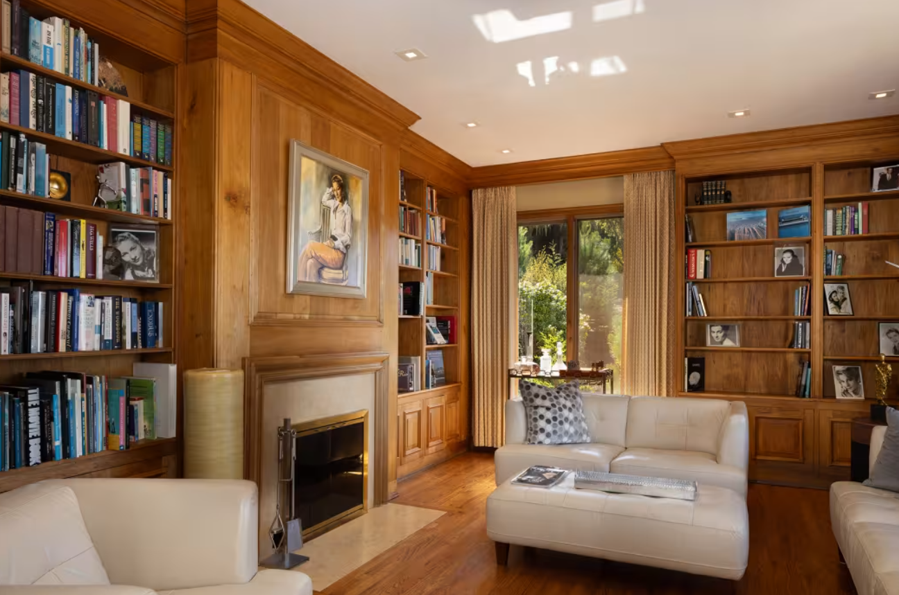Бібліотека, облицьована деревом, вшановує Фонтейн портретом актриси / Фото Шерман Чу, надано Tim Allen Properties