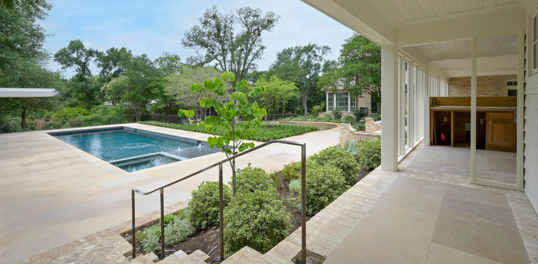 Він охоплює головний будинок із чотирма спальнями, гостьовий будиночок на дві спальні, басейн, гідромасажну ванну та гараж з кінозалом і приміщенням для вечірок над ним.