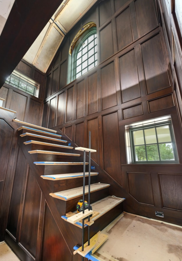 Під час реставрації подружжя зняло, очистило й повторно використало всю зовнішню цеглу. Також було переплановано частину житлових приміщень: зокрема, відкрито кухню в сторону вітальні для сучаснішого розташування. Тільки монтаж дерев'яних панелей у кінозалі тривав понад рік.