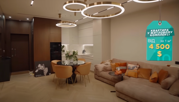 - Квартира оформлена у стилі "тиха розкіш" з акцентом на дорогий декор, включаючи брендовий посуд та дорогі матеріали.