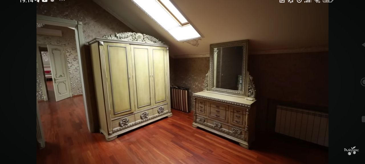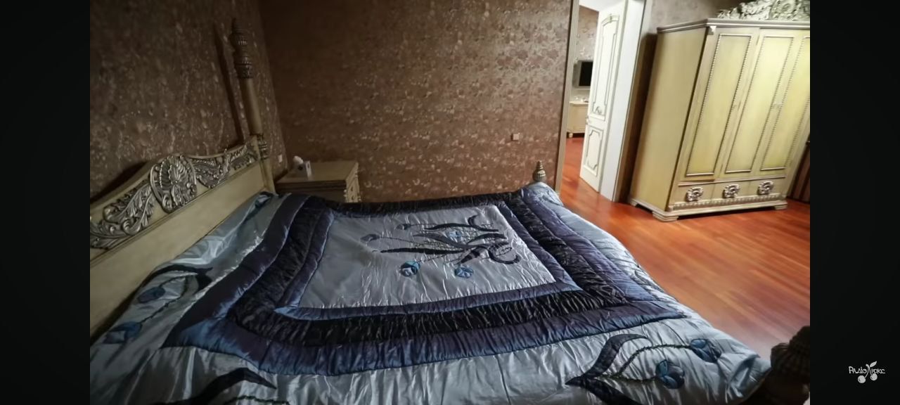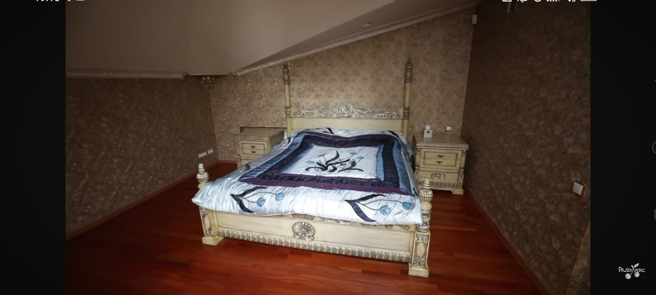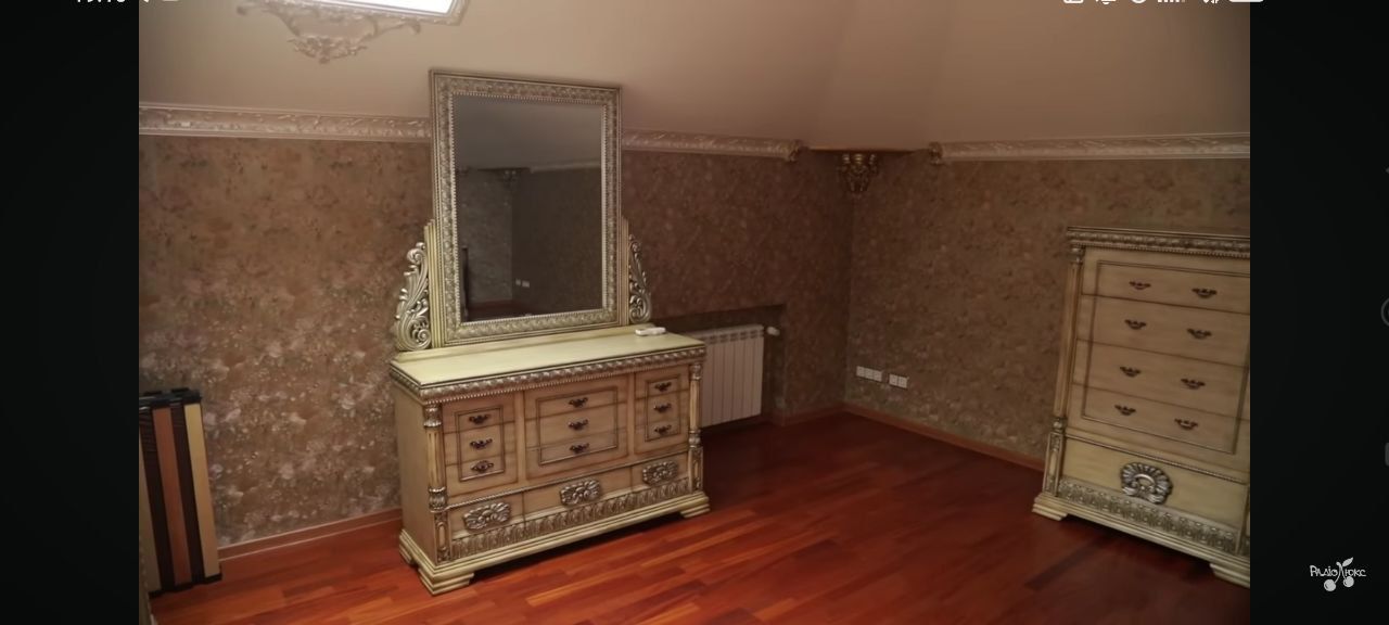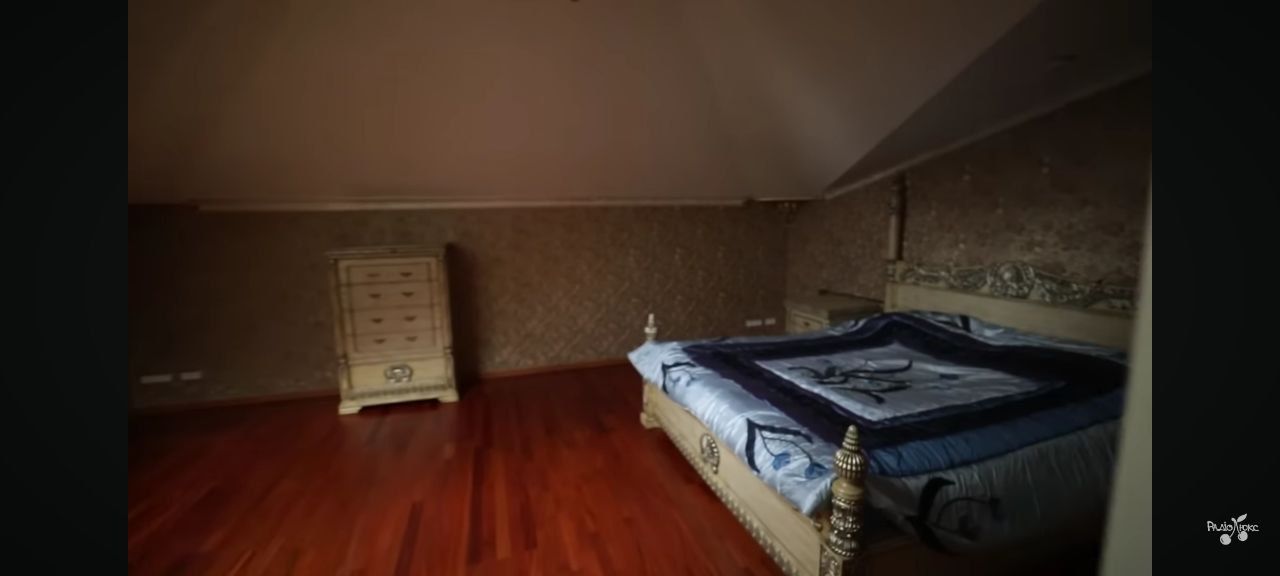 Інтер'єр гостьової спальні в маєтку Камалії оформлений у вишуканому класичному стилі з виразним акцентом на королівську розкіш. Масивне ліжко з декоративними стовпчиками і різьбленими деталями, як і решта меблів у кімнаті – комод, дзеркало та шафа – виконані у світлих відтінках з позолотою, що надає інтер'єру відчуття палацової атмосфери.