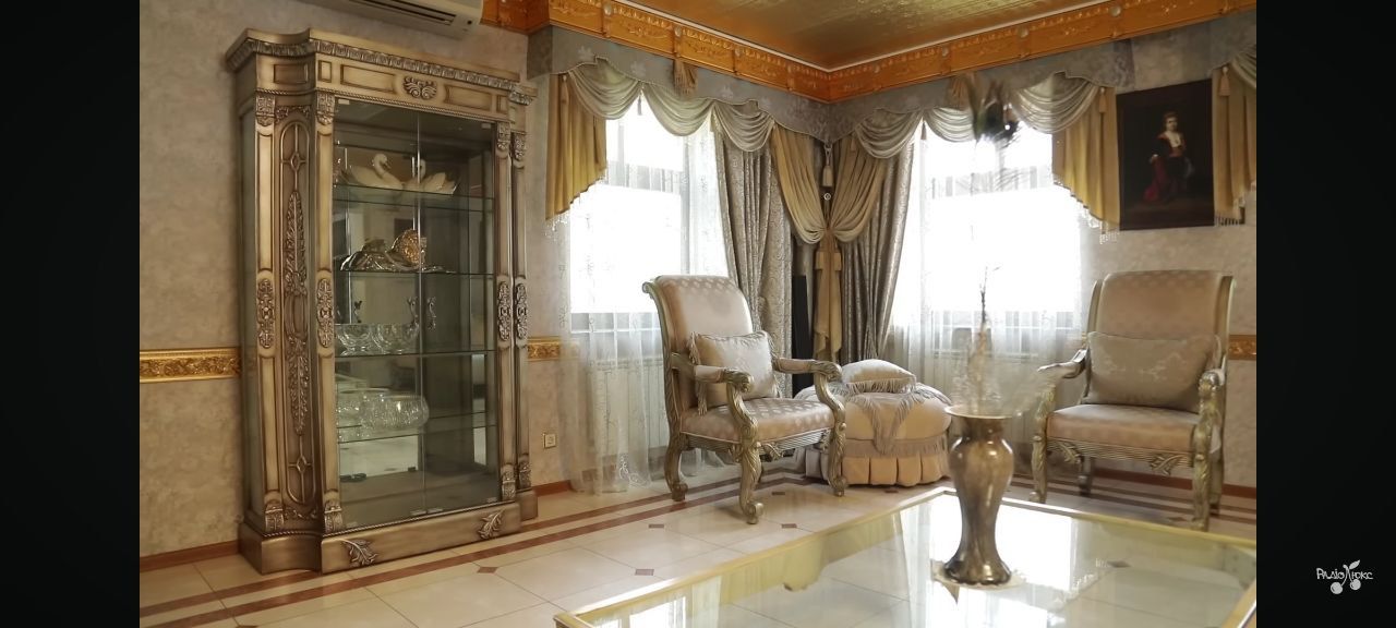 У кімнатах маєтку багато золотих і розкішних деталей, привезених з-за кордону. Не виняток і гостьова, розташована на другому поверсі, передає 24 Канал із посиланням на "По хатах".