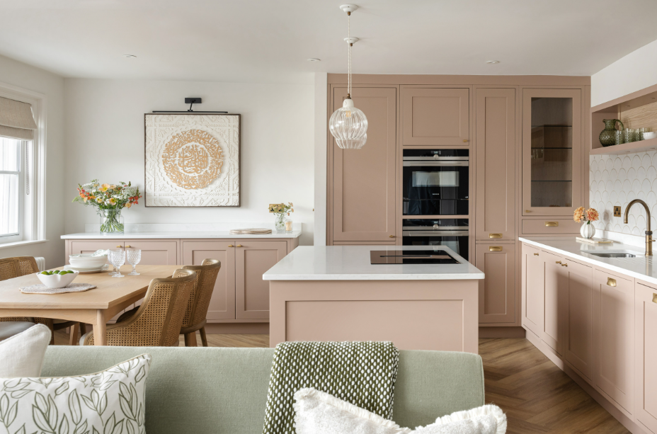 Все більше людей хочуть не глянцеву, а затишну кухню. Земляні рожеві відтінки чудово підходять для шаф, додають тепла та ніжності.