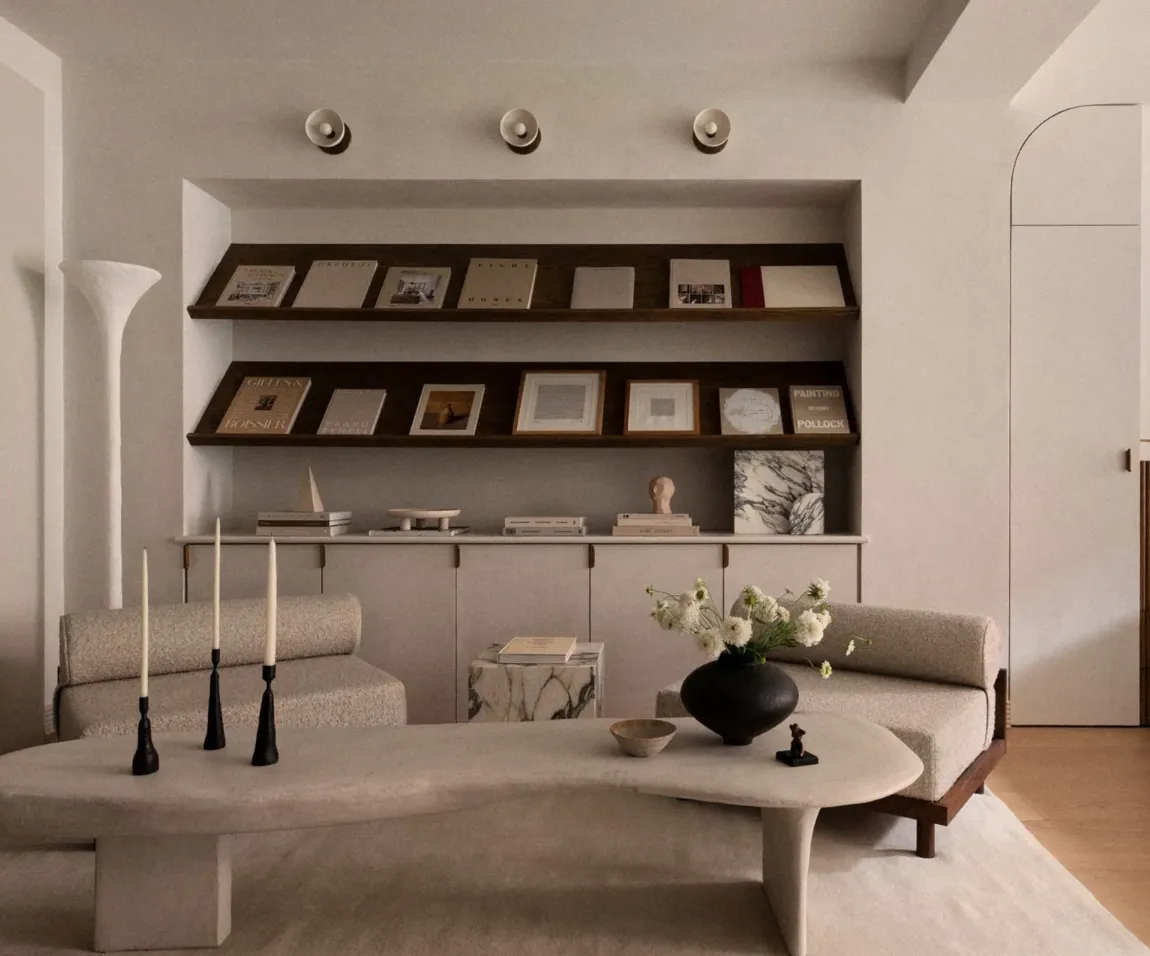 Один зі способів створення теплого мінімалістичного середовища – це додавання тональних текстур, таких як подушка з букле, вовняні портьєри, оксамитовий диван та кашемірова ковдра в монохроматичній палітрі. Такі речі дозволяють простору мати більшу глибину, не перевантажуючи та не захаращуючи його.