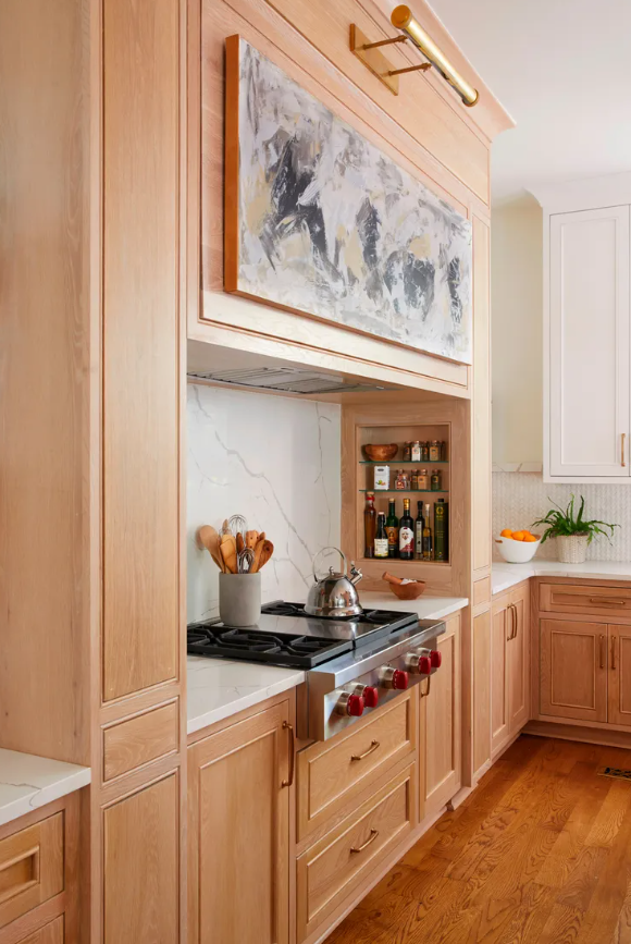 Усередині ніші також можна втілити креатив: інтегрувати освітлення, облаштувати зберігання для спецій або приховані висувні системи для тримання кухонного приладдя.