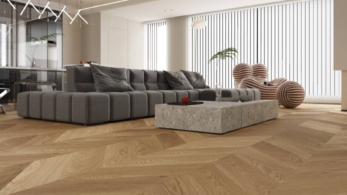 Щоб зробити паркетну підлогу актуальною, варто також звернути увагу на колірну гаму. На 2025 рік і далі у тренді будуть теплі та нейтральні відтінки. Сірий паркет досі має популярність, але все більше власників будинків віддають перевагу теплим відтінкам коричневого, таким як карамельний і каштановий, які додають простору глибини та вишуканості.