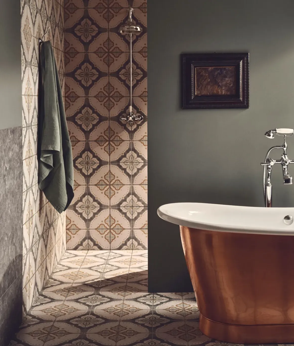 "Обкладання стін і підлоги вашої ванної кімнати плиткою – це сміливий, але позачасовий спосіб заявити про себе, перетворюючи кімнату на простір текстури та глибини. Ми рекомендуємо вибрати візерунчасту плитку землистого відтінку, щоб створити вражаючий, але цілісний вигляд", – каже Карлі Еллісон.