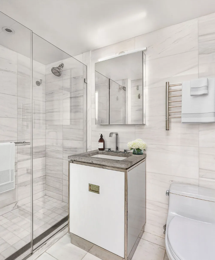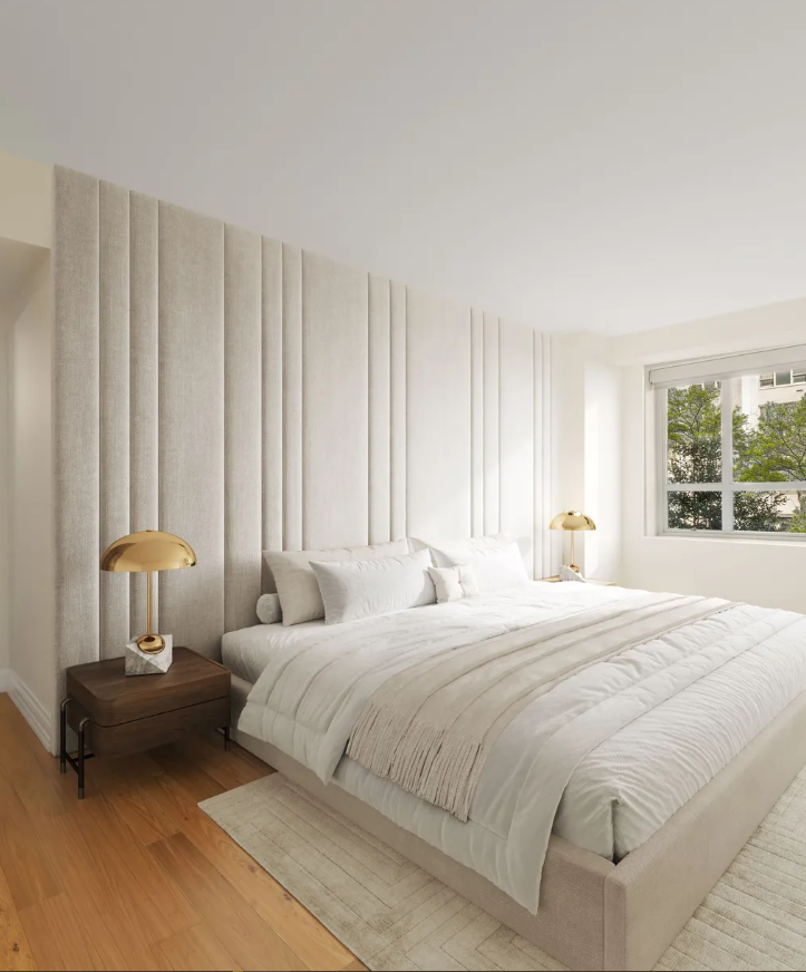 Теперь обновленное помещение имеет 3 спальни и 3 ванны. Интерьер оформлен в кремовых тонах, с доминированием натуральных материалов, таких как дерево и мрамор, а также минималистичным декором.
