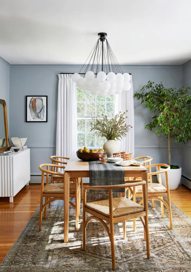 Сине-серый цвет стен в столовой / Фото Кианна Боуэн