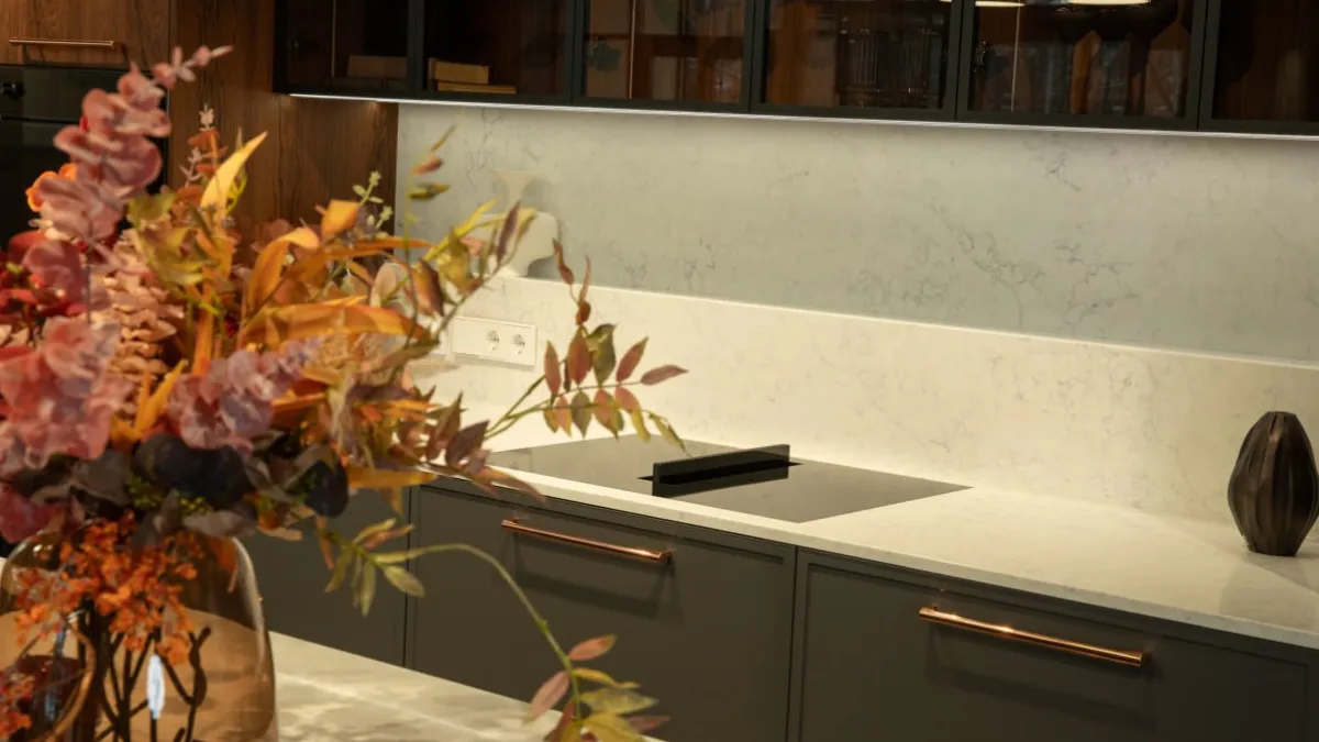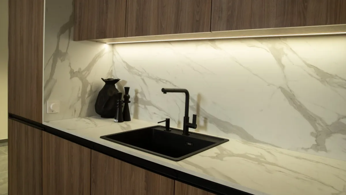 А для классического пространства подойдут керамогранит, кварцит и акриловый камень, которые идеально воспроизведут внешний вид мрамора и других природных материалов.
