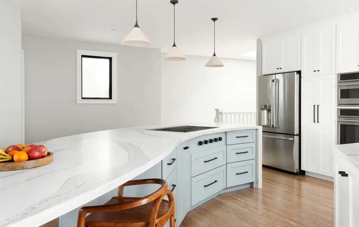 Если вы хотите придать своей кухне непринужденности, для наиболее спокойного сочетания цветов рассмотрите белый и голубой. Специалисты говорят, что такие тона часто создают вид прибрежной и морской тематики, которая всегда в моде.