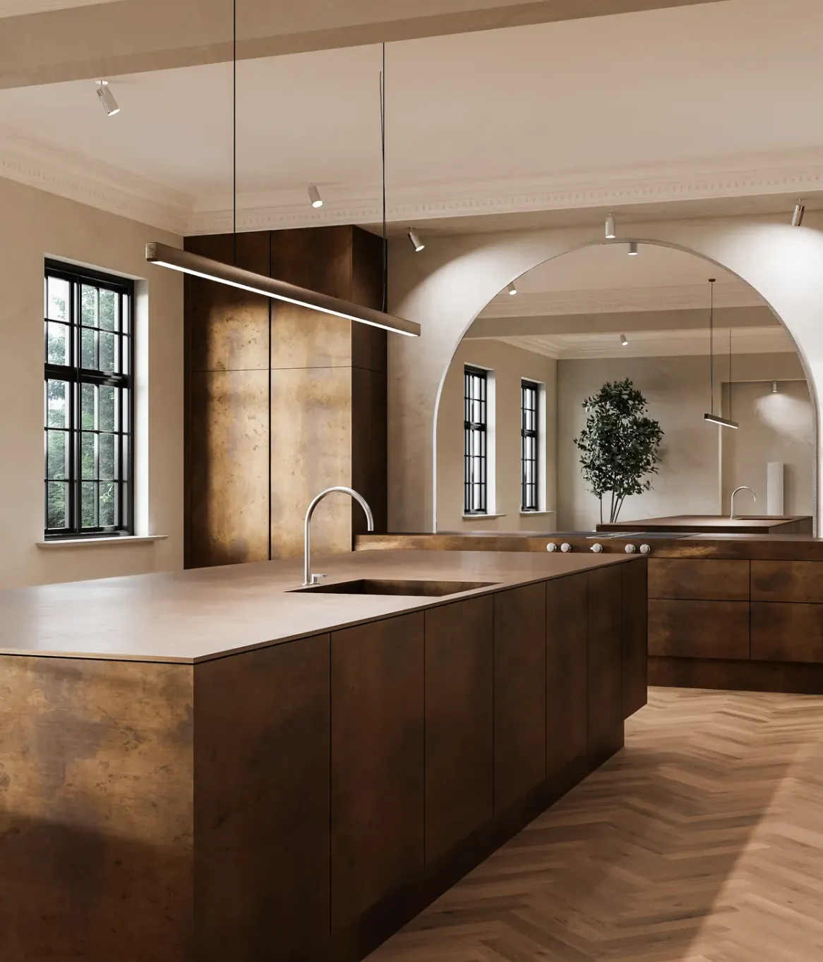 Бронзовые цвета кухонного шкафчика / Фото Tendens Studio