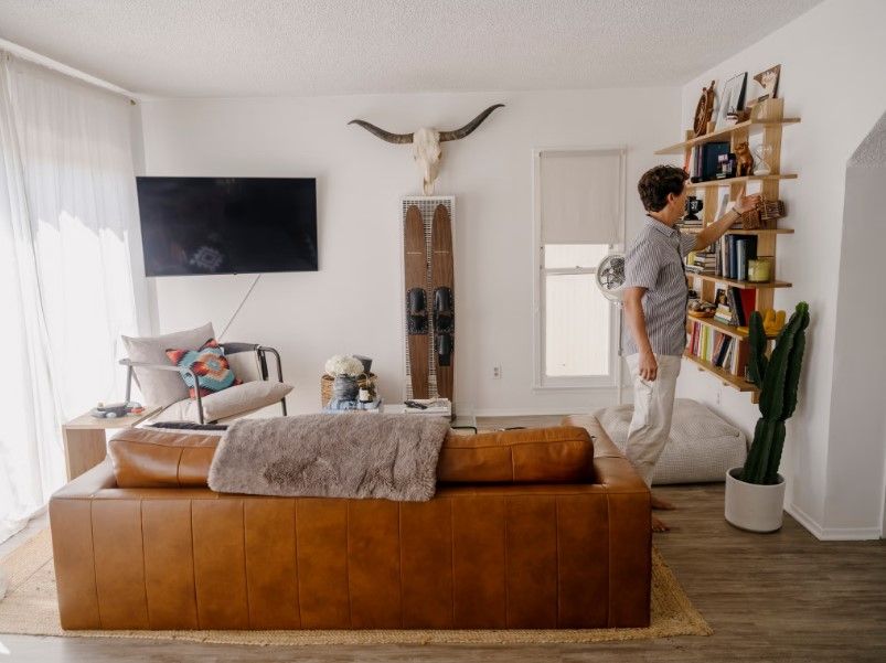 Вуд переехал в квартиру площадью более 111 квадратных метров почти год назад, и ему понадобилось почти такое же время, чтобы полностью обустроиться. Его предыдущий дом был новым зданием, и Вуд устал от идеальных отделок и современной фурнитуры.