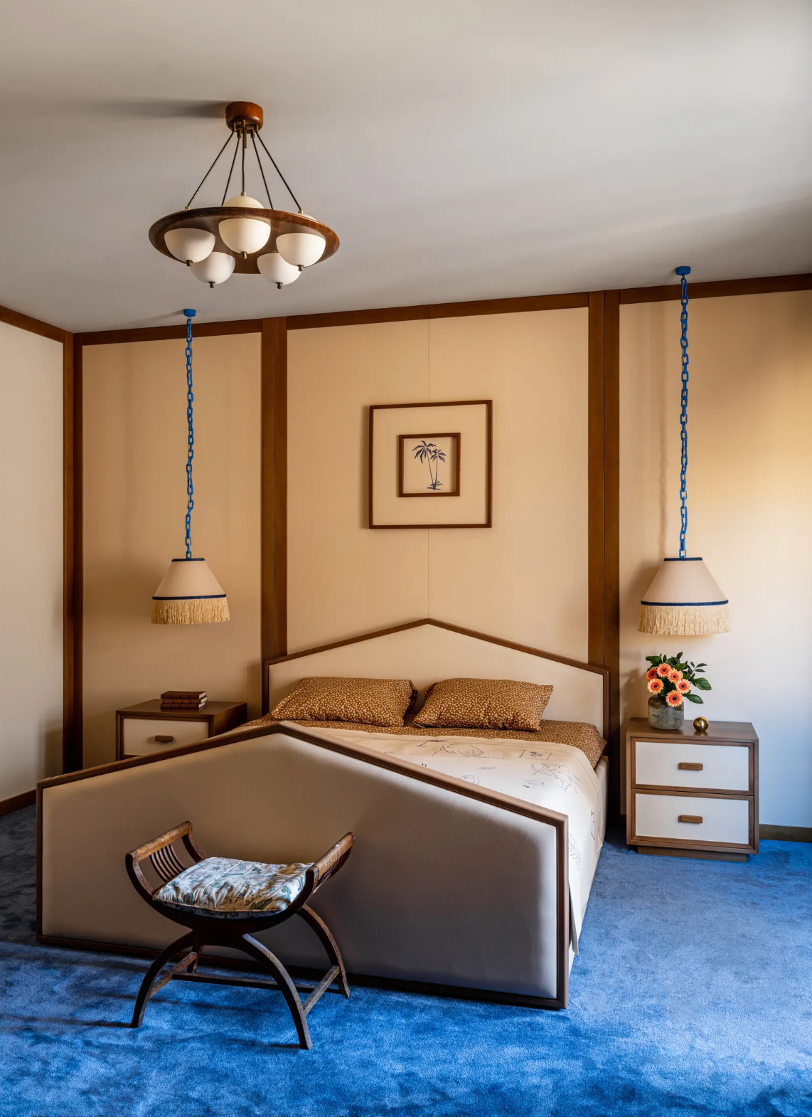 Подумайте про те, щоб додати плед, який повторює візерунок шпалер або килима, або декоративну подушку, відтінок якої повторює тон на дерев'яній тумбочці. Ці тонкі елементи повторення – через колір, візерунок чи текстуру – допомагають у створенні цілісного та гармонійного середовища в просторі.